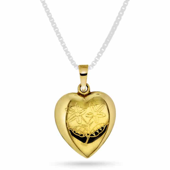 Gult gull H:19 mm B:13 mm. Norsk produsert, kan graveres på bakside. Pris uten kjede.