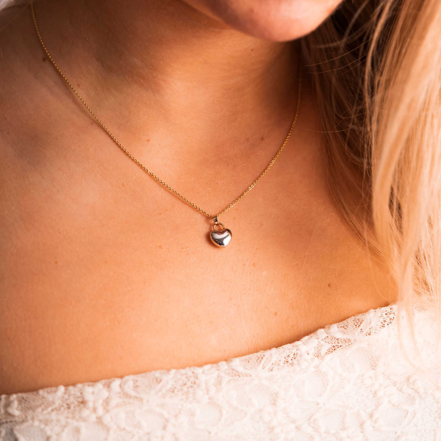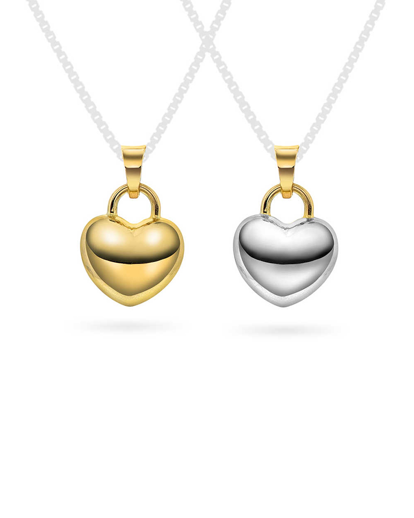 Hjertesmykke i gult og hvitt gull 15mm