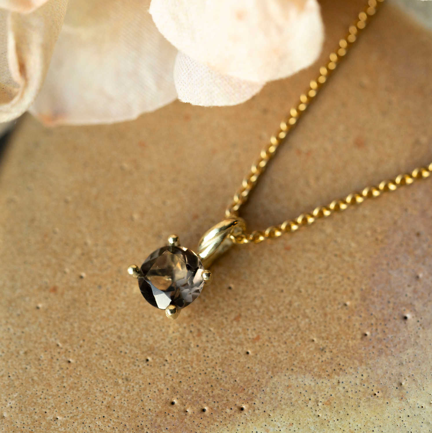 Anheng i gull med røkkvarts