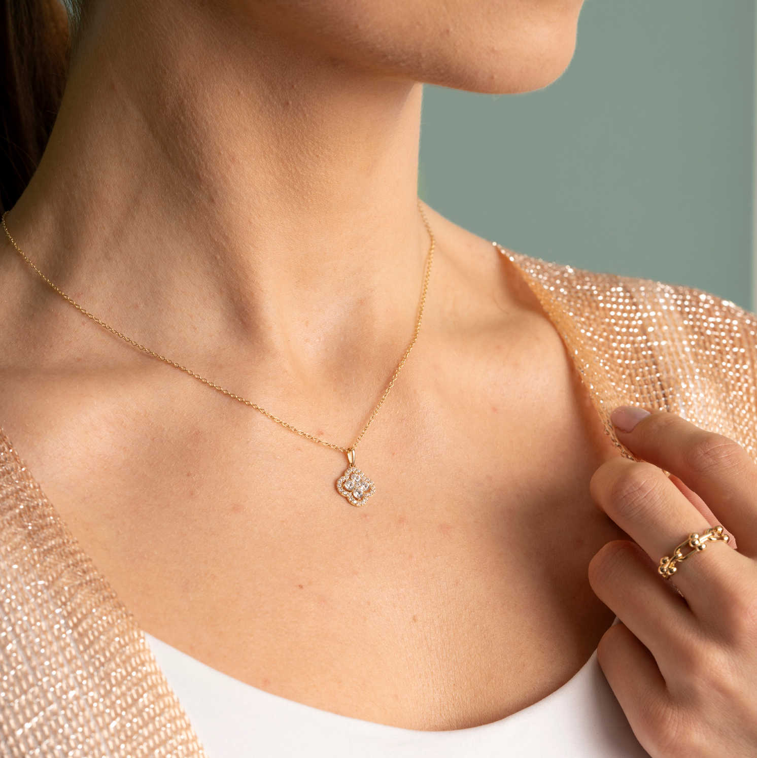 Anheng i gull med zirkonia blomst