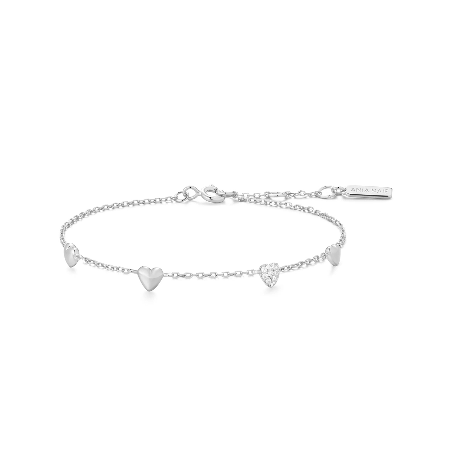 Ania Haie Silver Pavé Puffed Heart Station Bracelet