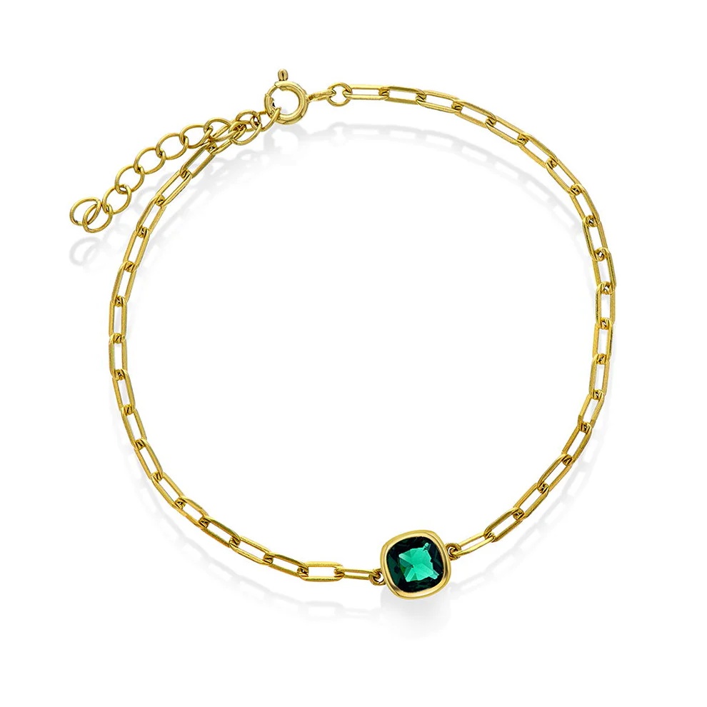 Armbånd i forgylt 925 sølv med grønn sten