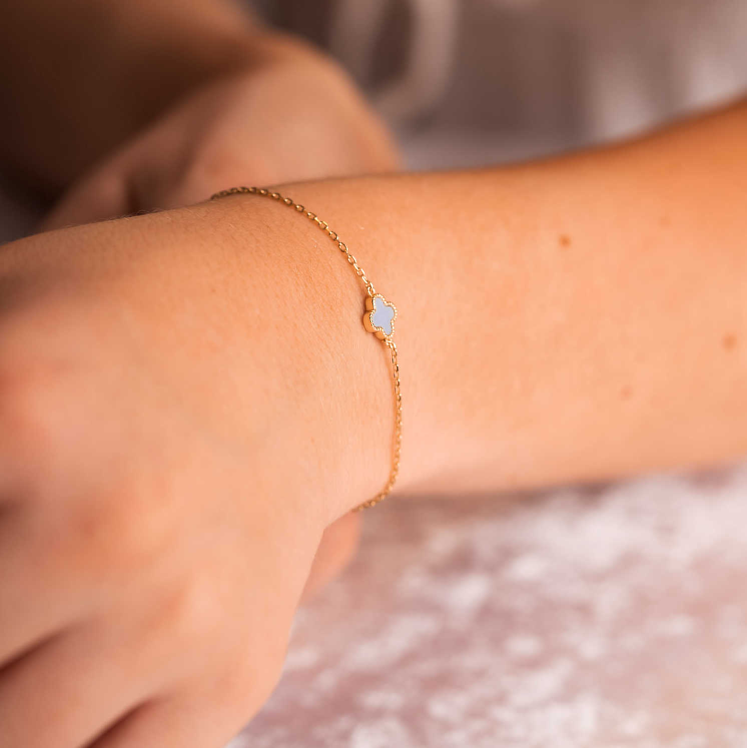 Armbånd i sølv med lysblå kløver