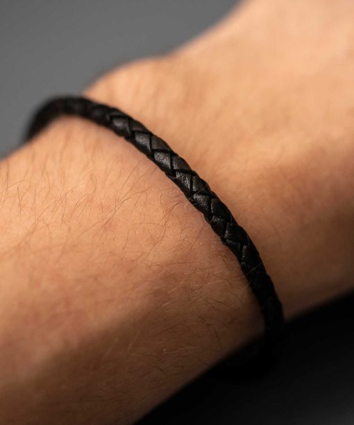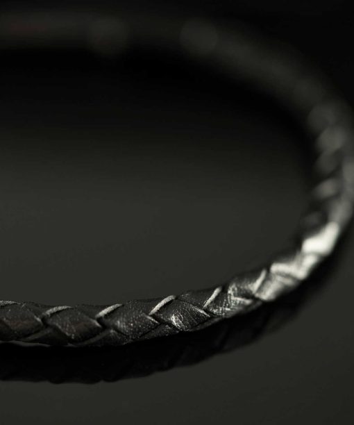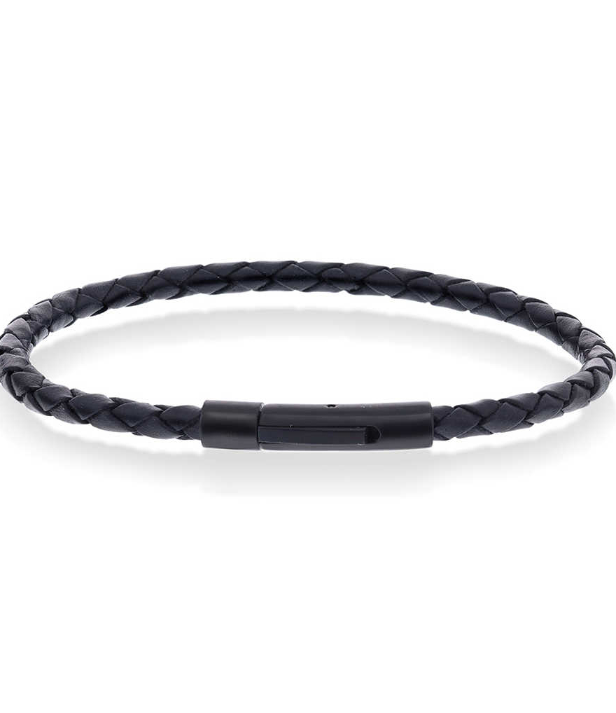 Armbånd i stål og sort skinn