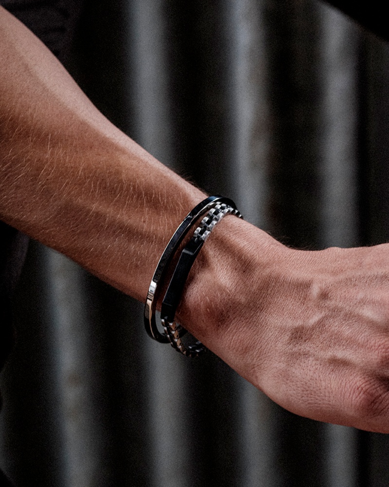 Lenkearmbånd laget av kirurgisk rustfritt stål. Matt finish med polerte detaljer.