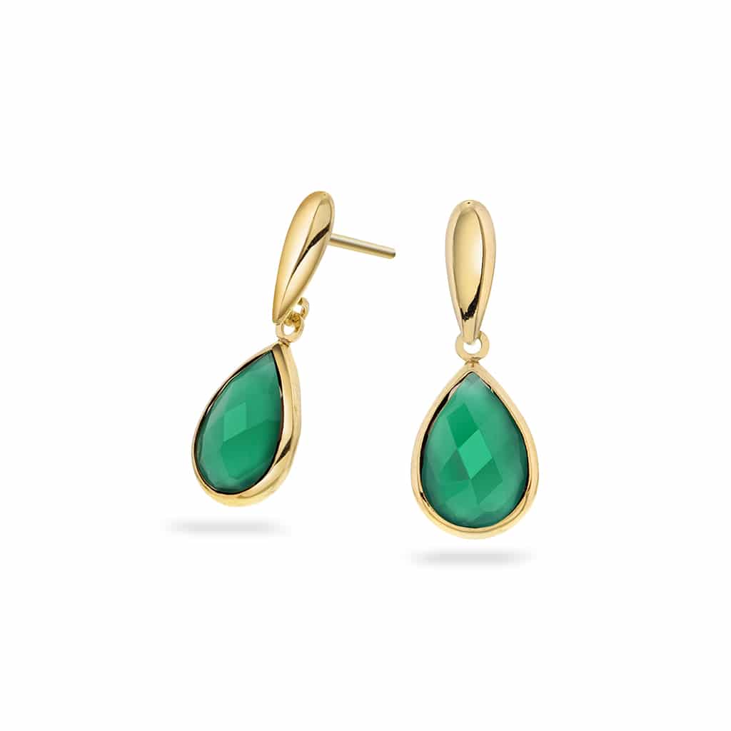 Christophersen Gult Gull øreheng grønn onyx dråpe