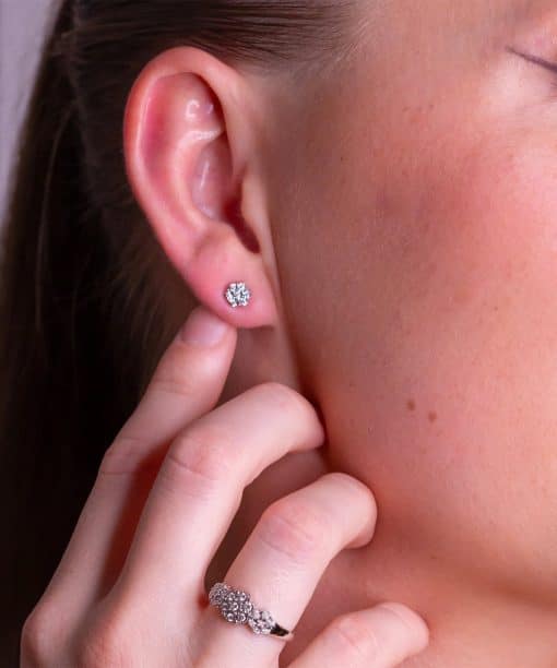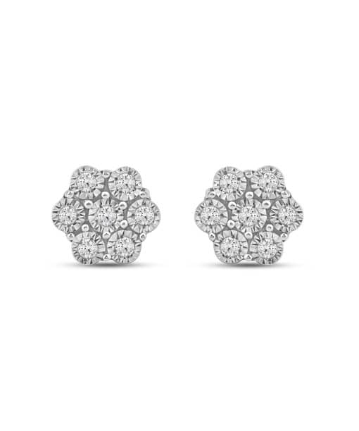 Luksuriøs diamantørepynt i gult eller hvitt gull, utsmykket med diamanter på totalt 0.08 ct TW/SI. De sirlig innfattede diamantene danner et blomsterlignende mønster som skaper et elegant spill av lys, mens valget mellom det varme gullet eller det kjølige hvite gir smykket en personlig karakter. En gnistrende detalj som setter et sofistikert preg på både hverdag og fest.