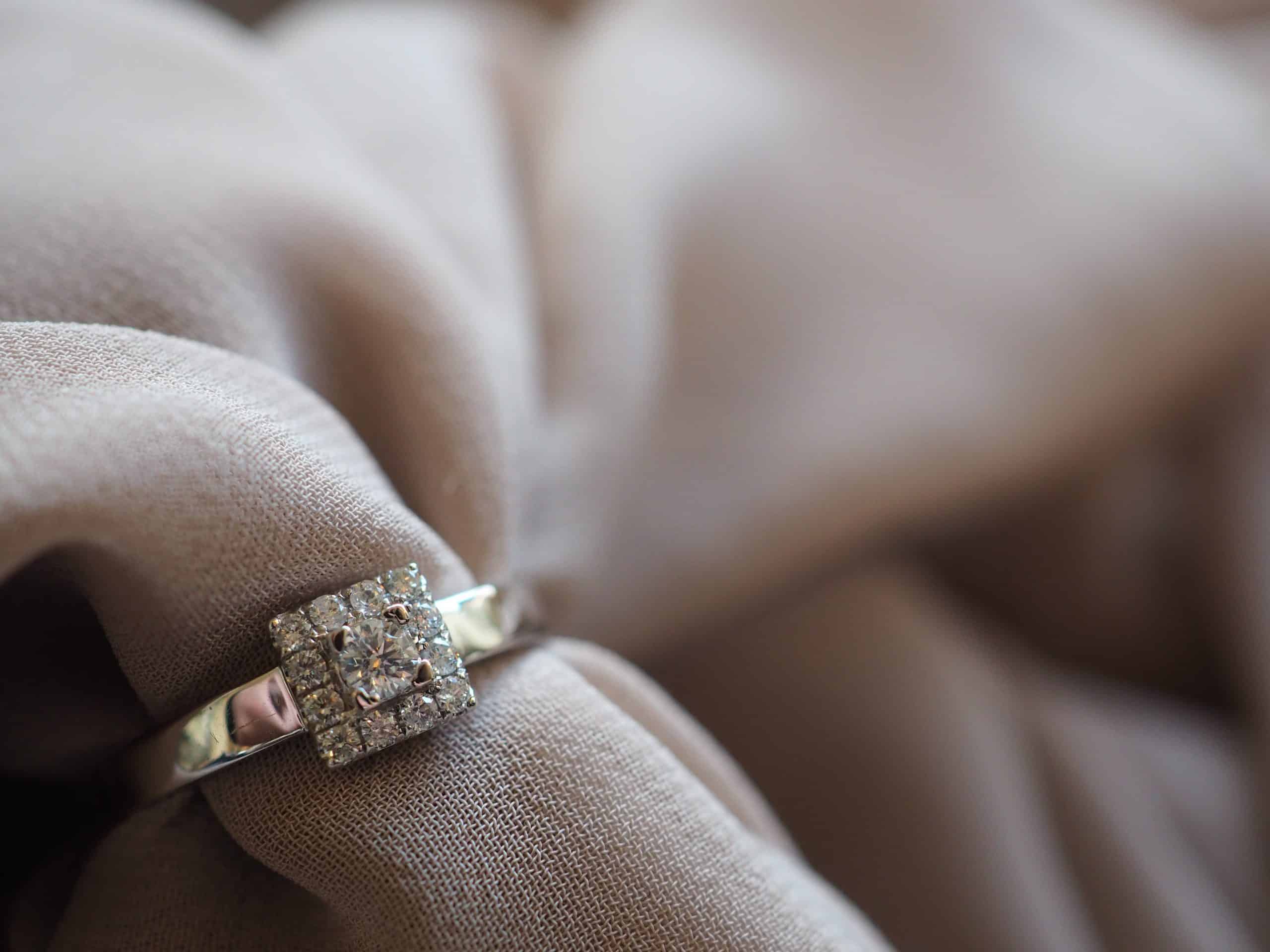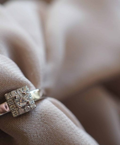 Diamantring firkantet ramme tot. 0,30ct TW Si