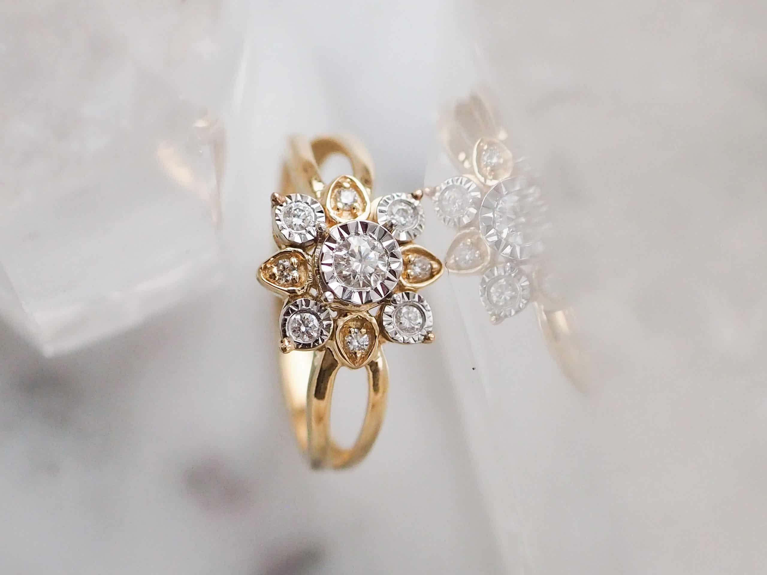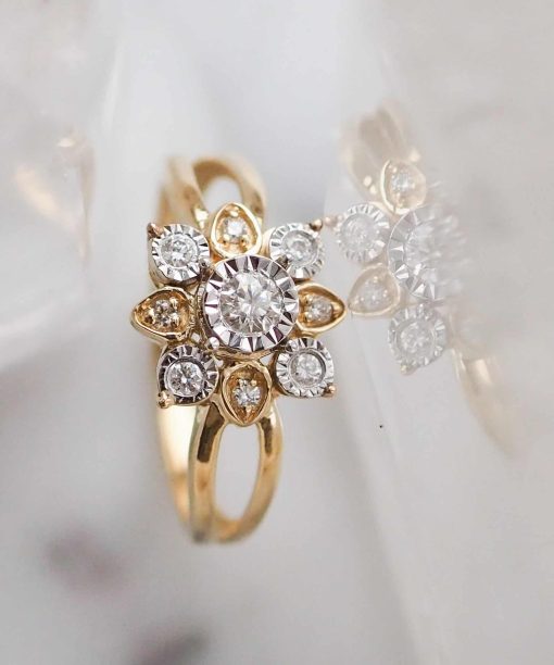 Diamantring i gult gull Rosettstjerne, 0.20ct
