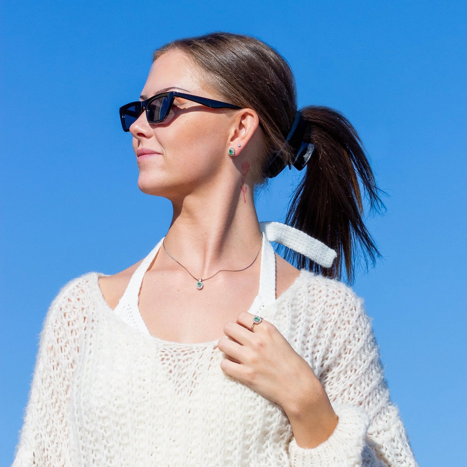 Imponerende anheng i hvitt gull med en naturlig smaragd som skaper et friskt og levende uttrykk. Diamanter på totalt 0.08 ct omkranser edelstenen og gir smykket en luksuriøs finish. Et ideelt valg for deg som vil tilføre farger og glans til stilen din. Et smykke som raskt blir en personlig favoritt.