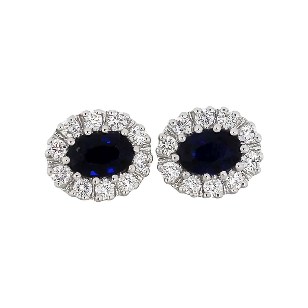Tidløs diamantørepynt i 14 karat hvitt gull med safirer på 1.30 ct og 0.50 ct TW/SI diamanter. Den dype blå edelstenen står i nydelig kontrast til diamantene og gir et raffinert og kongelig uttrykk. Den ovale fasongen gir smykket balanse, mens hvitt gull sikrer et moderne preg.