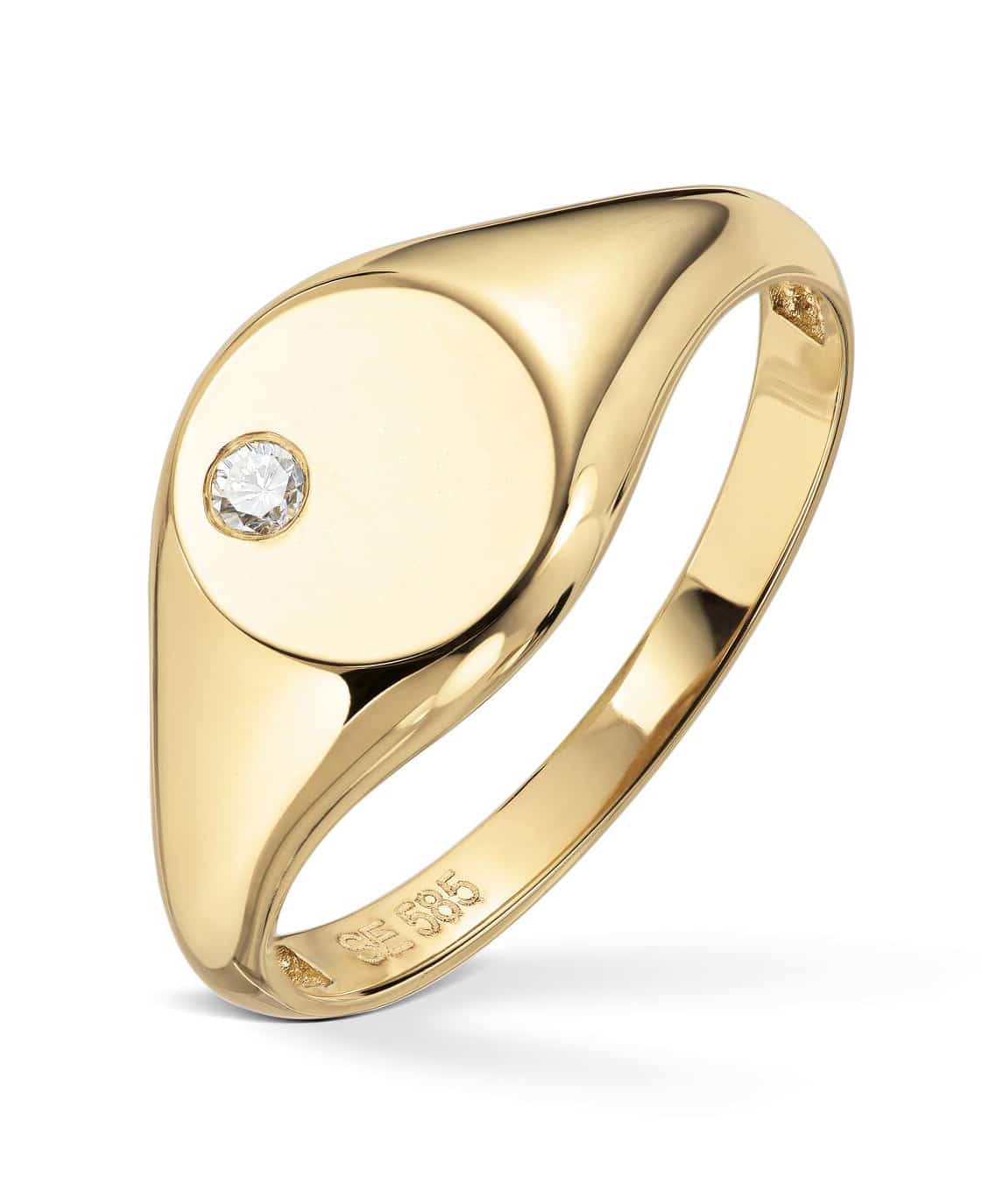Stilig signetring med diamant. Kan graveres.