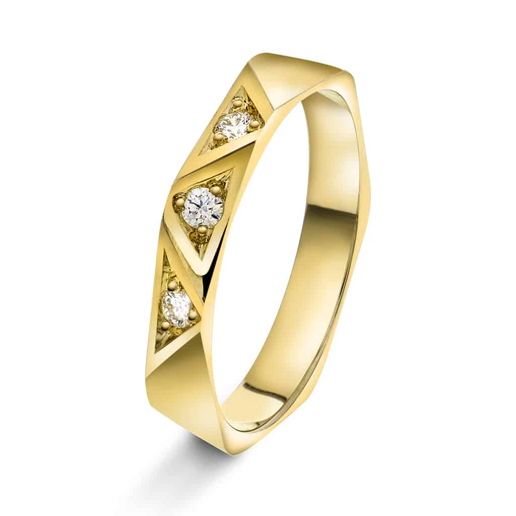 Fasettring i gult gull, Diamant 0.06ct (TWSI)