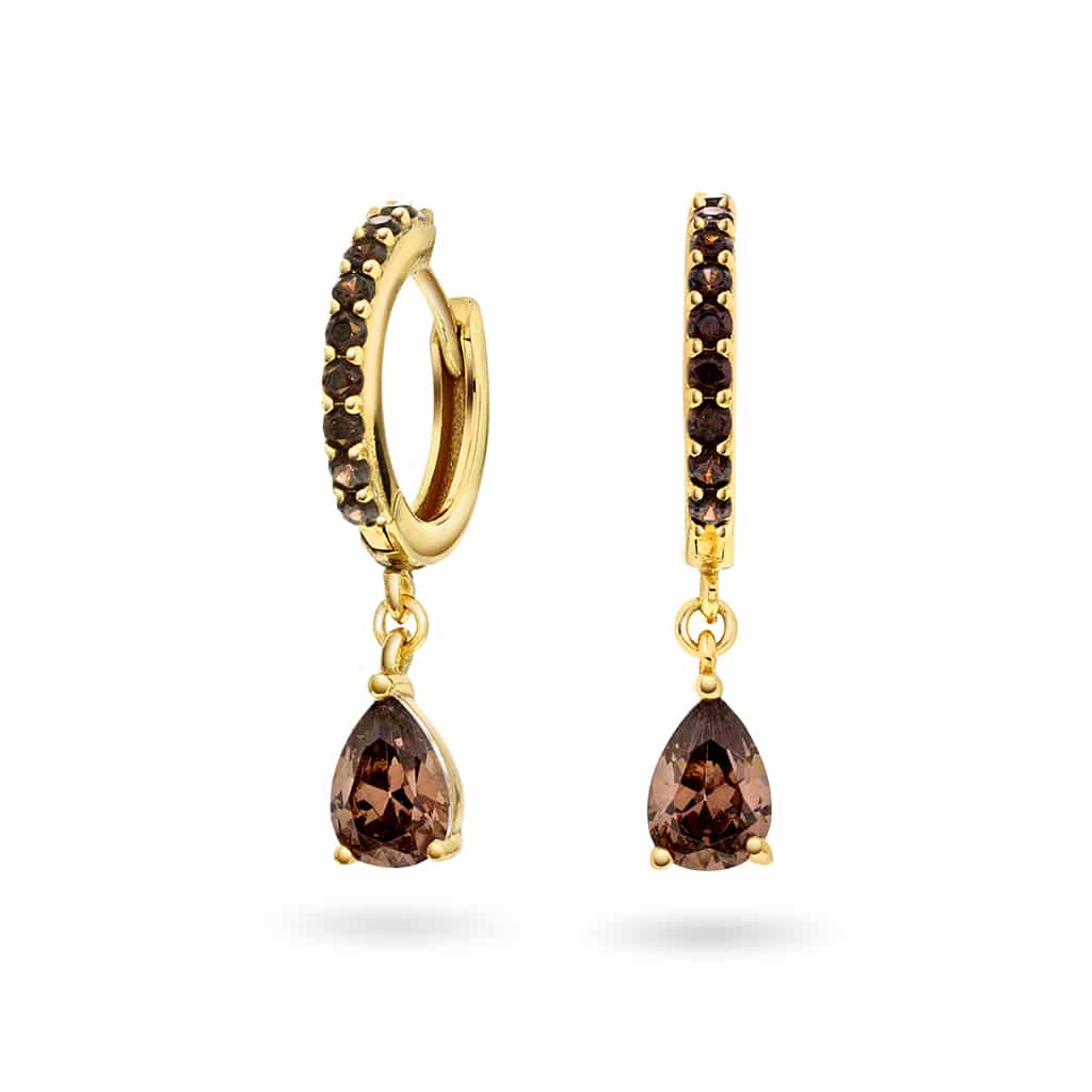 Fiji øredobber i sølv m/zirkonia, kaffe