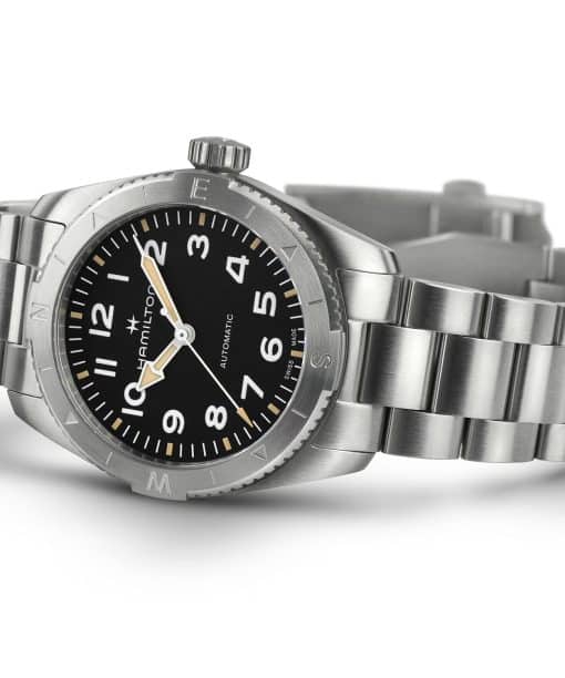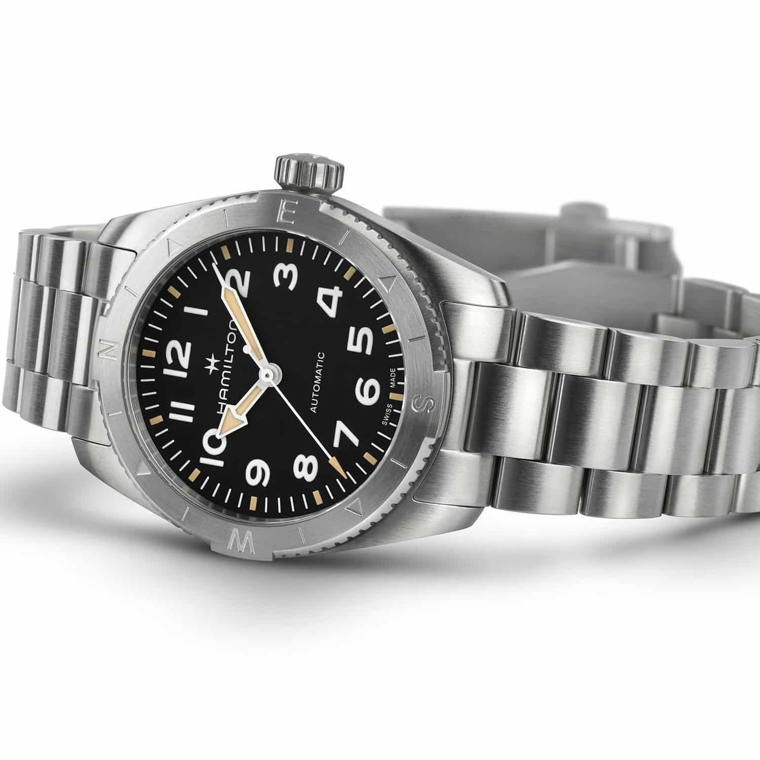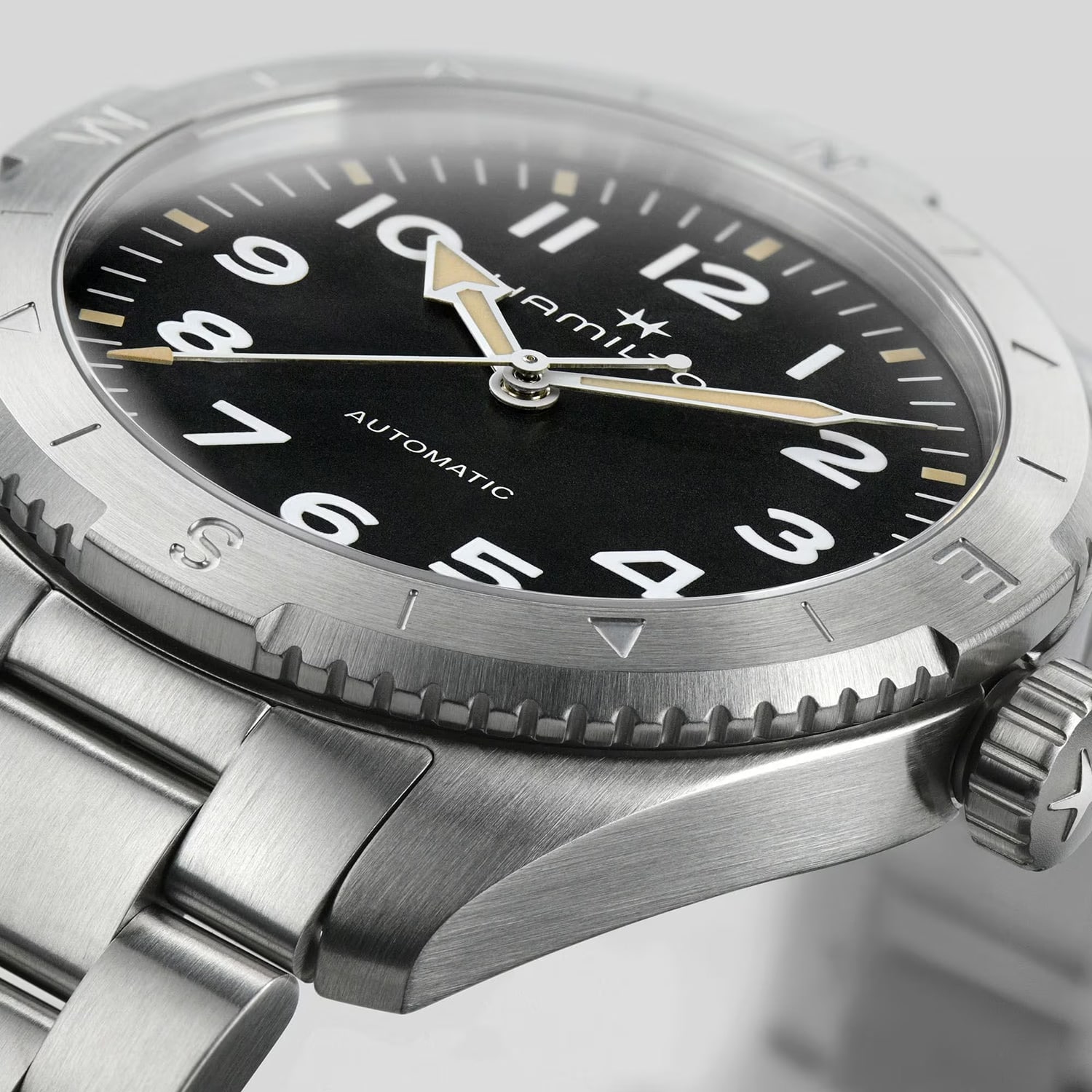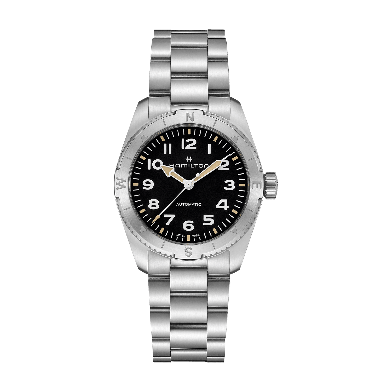 Gjør deg klar for friluftslivet med Khaki Field Expedition, en klokke for alle typer eventyr og terreng. Klokken har et kompassdesign som hjelper deg å navigere eventyrene dine med solen som guide. Med 37mm kasse i rustfritt stål og matchende lenke. Klokken er utstyrt med en skrukrone for å beskytte urverket uansett værforhold. Med en svart teksturert urskive og Super-LumiNova®-belegg for optimal lesbarhet, er Khaki Field Expedition klar når du trenger det mest.