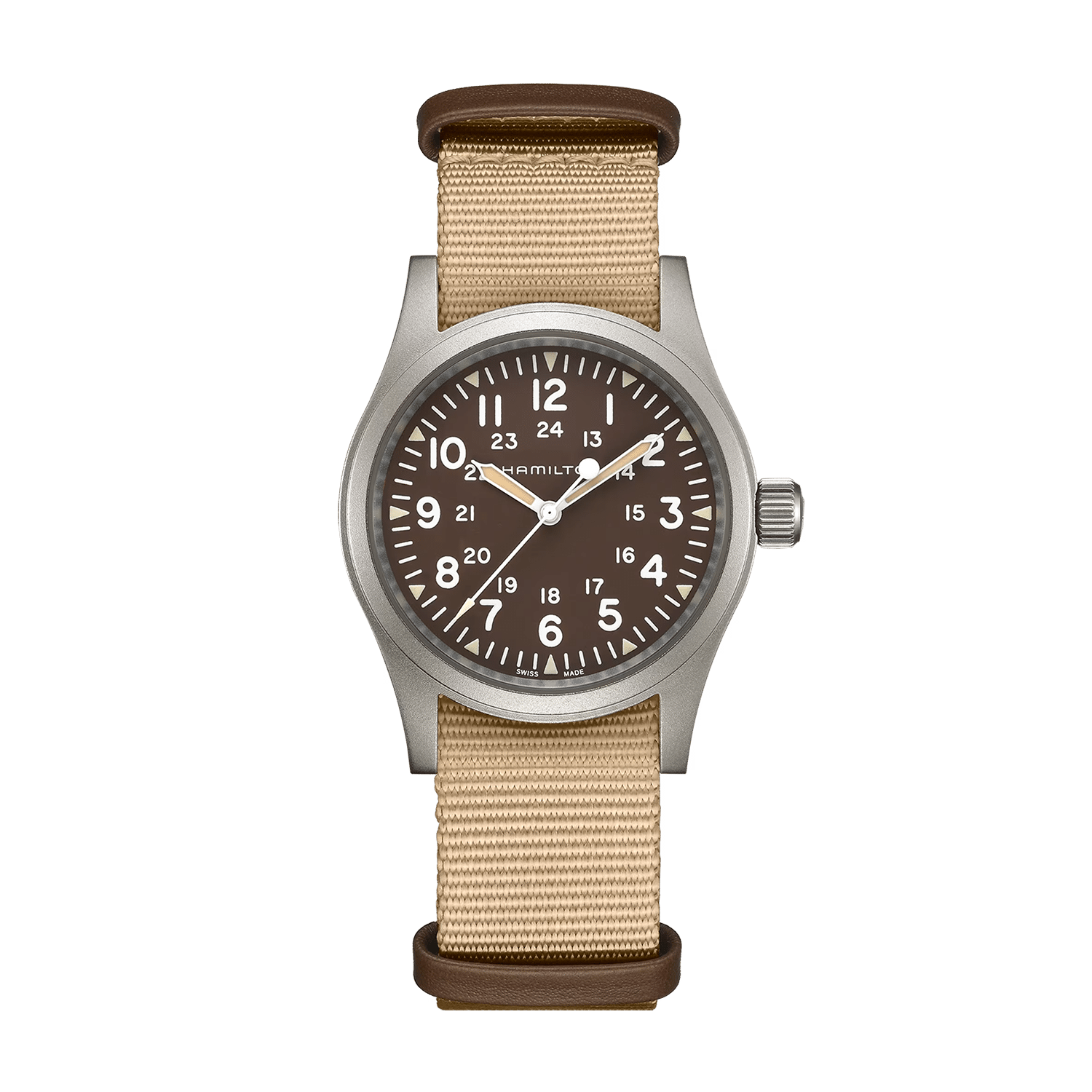 38mm kasse i matt, rustfritt stål, tre visere, mørk tallskive med lyse, selvlysende tall, indekser som viser timer og minutter og slitesterk NATO-reim: Den nye Khaki Field Mechanical er en ekte gjenskapelse av forgjengeren fra 1960-tallet og er trofast mot Hamiltons militære arv. Inspirert av militæret og bygget for å vare – dette er den originale soldatklokken.