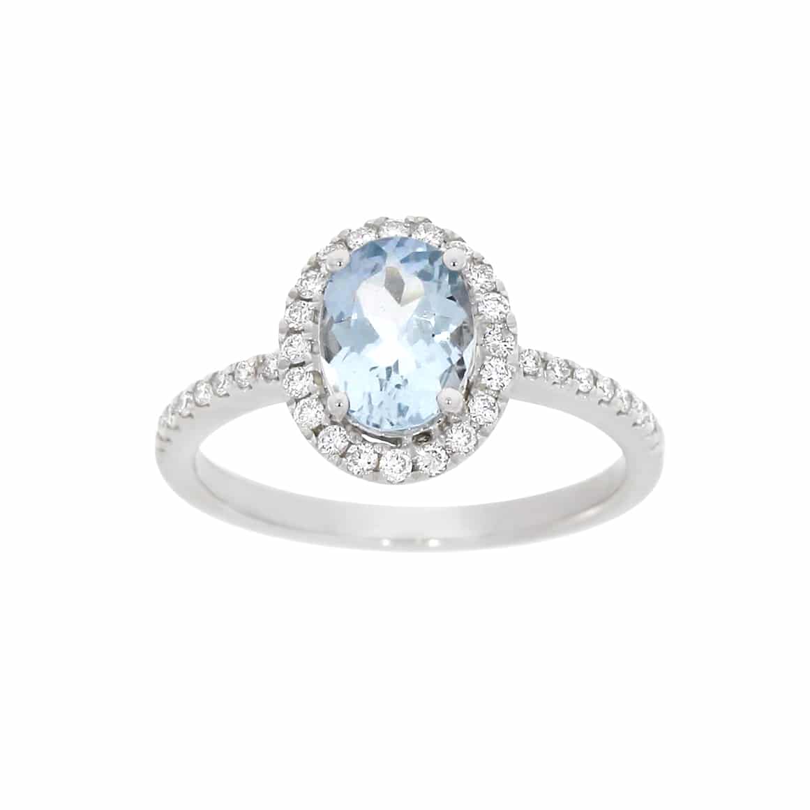 Hvitt gull diamantring med Aquamarin og diamanter 0.30ct TW.SI