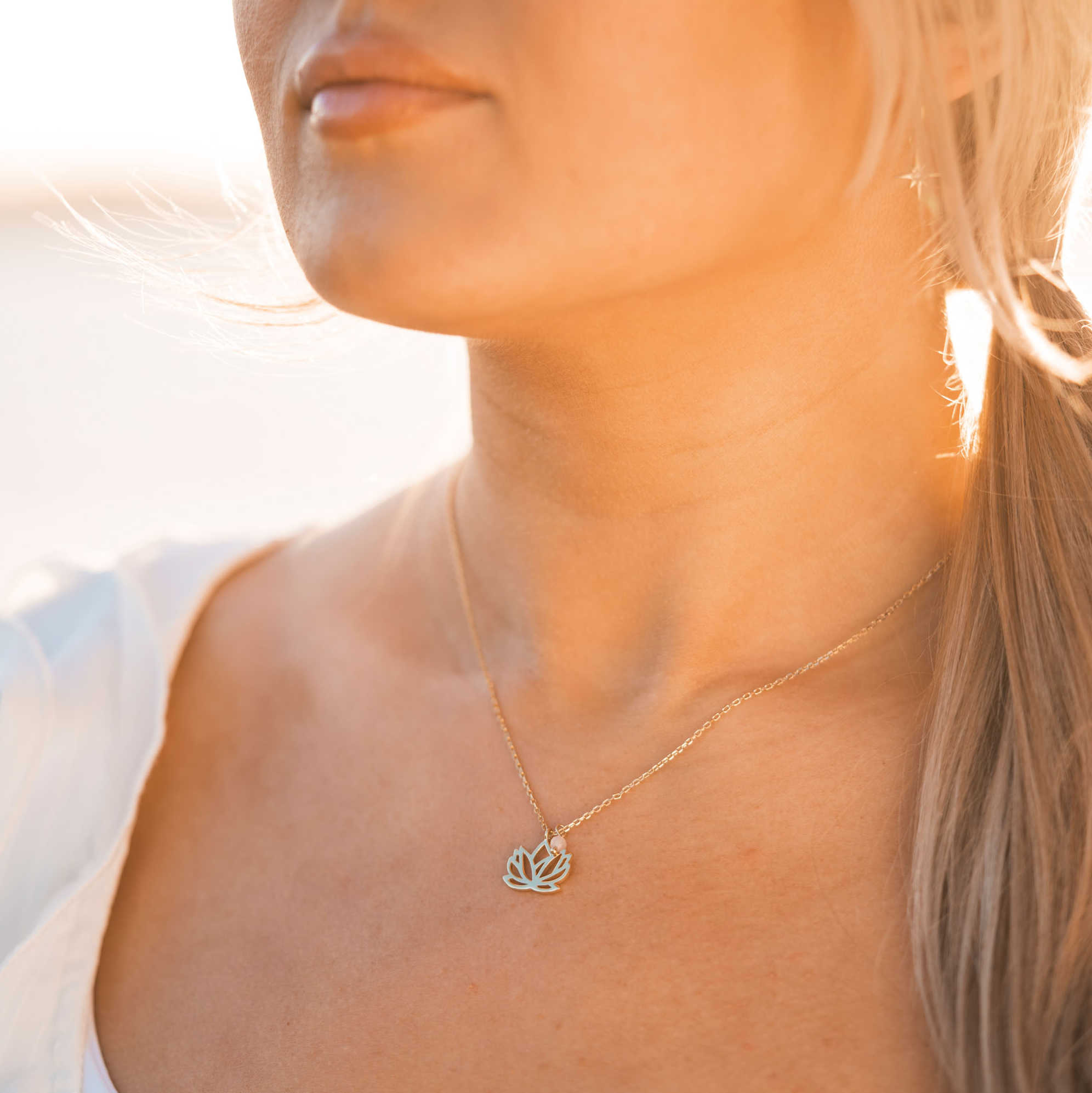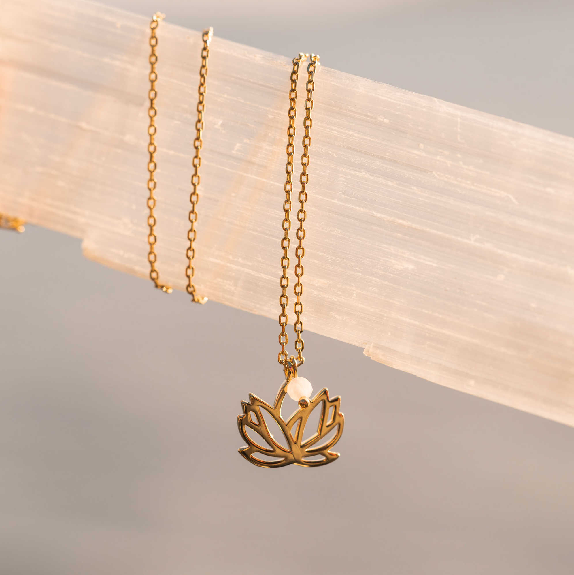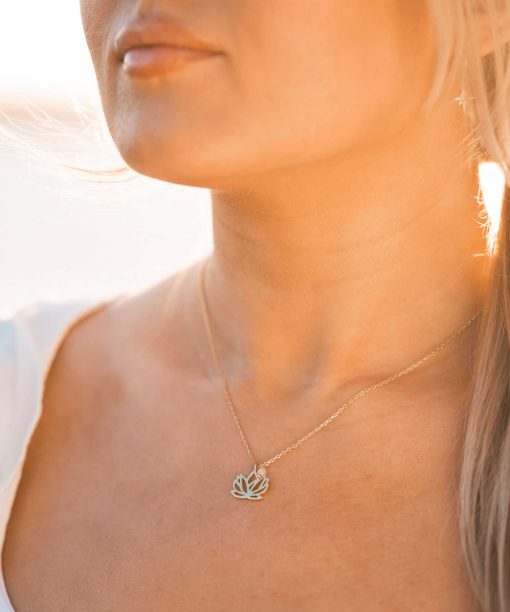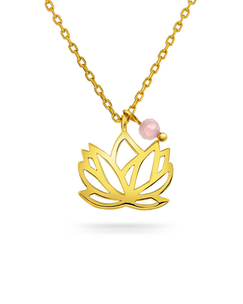 Lotus smykke i sølv med rosenkvarts