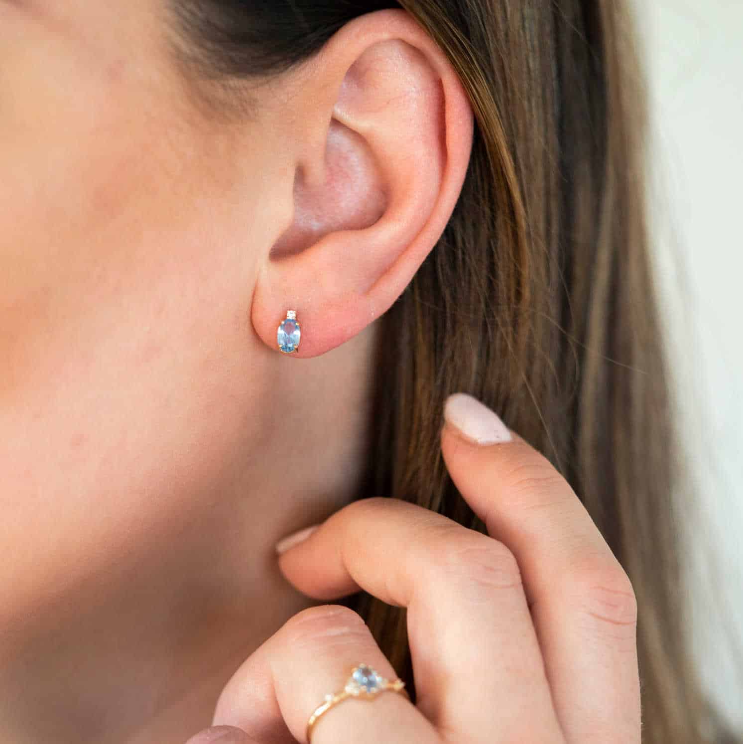 Øredobber gull med syntetisk blå spinell