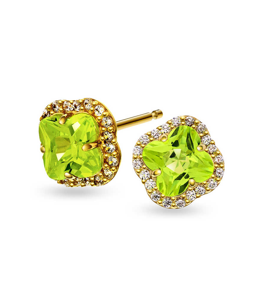 Øredobber i gull med grønn zirkonia