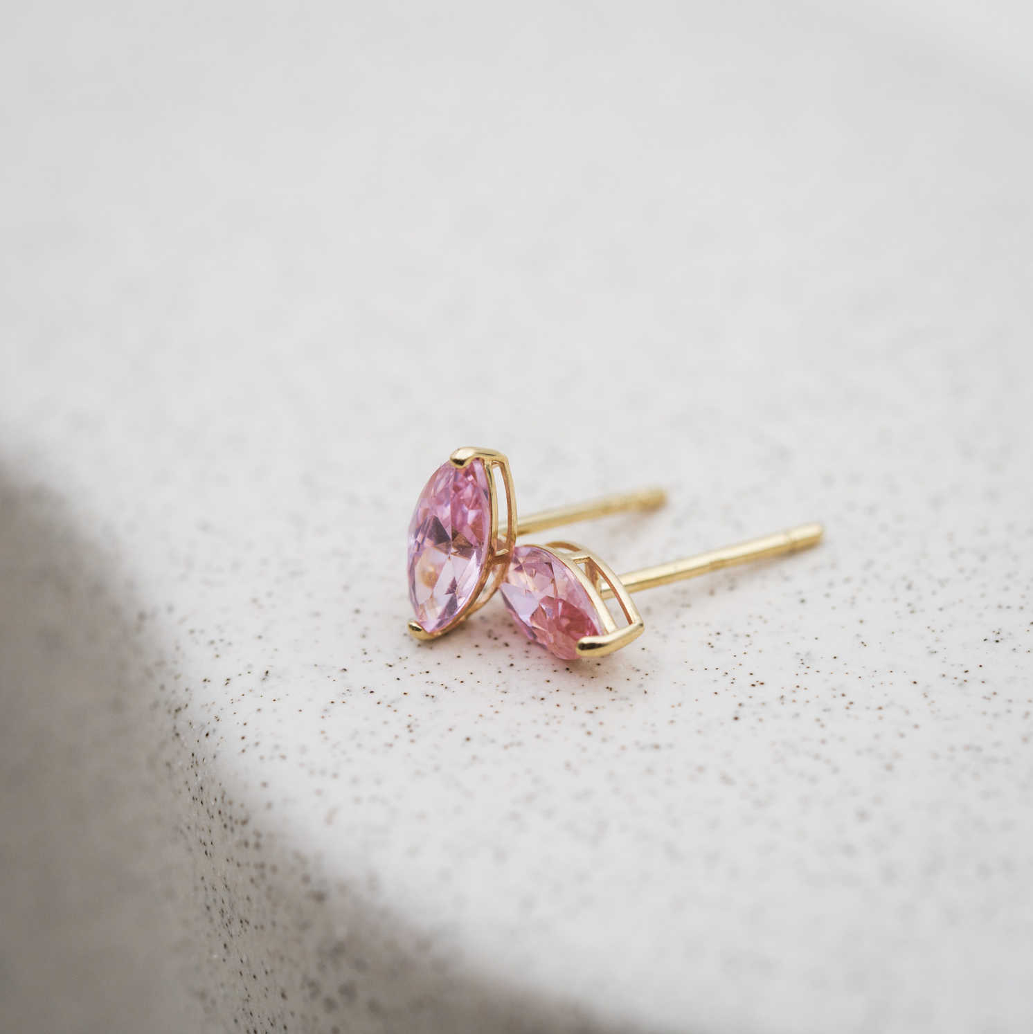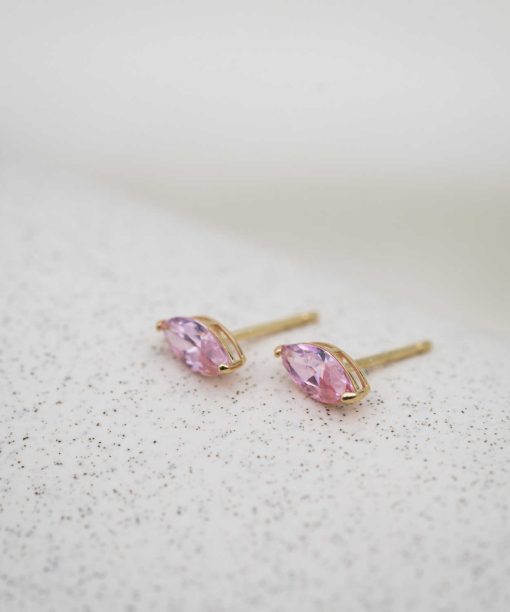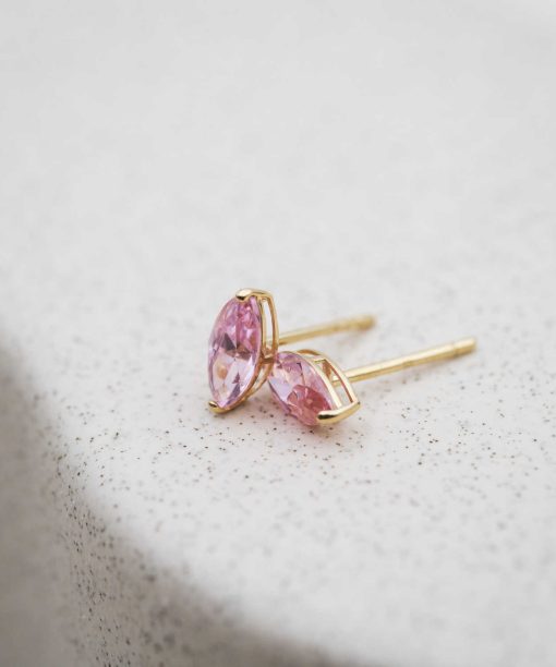 Øredobber i gull med lys rosa zirkonia