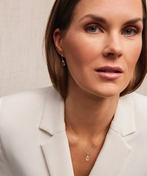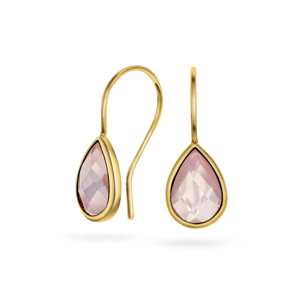 Øredobber i gull med rosenkvarts