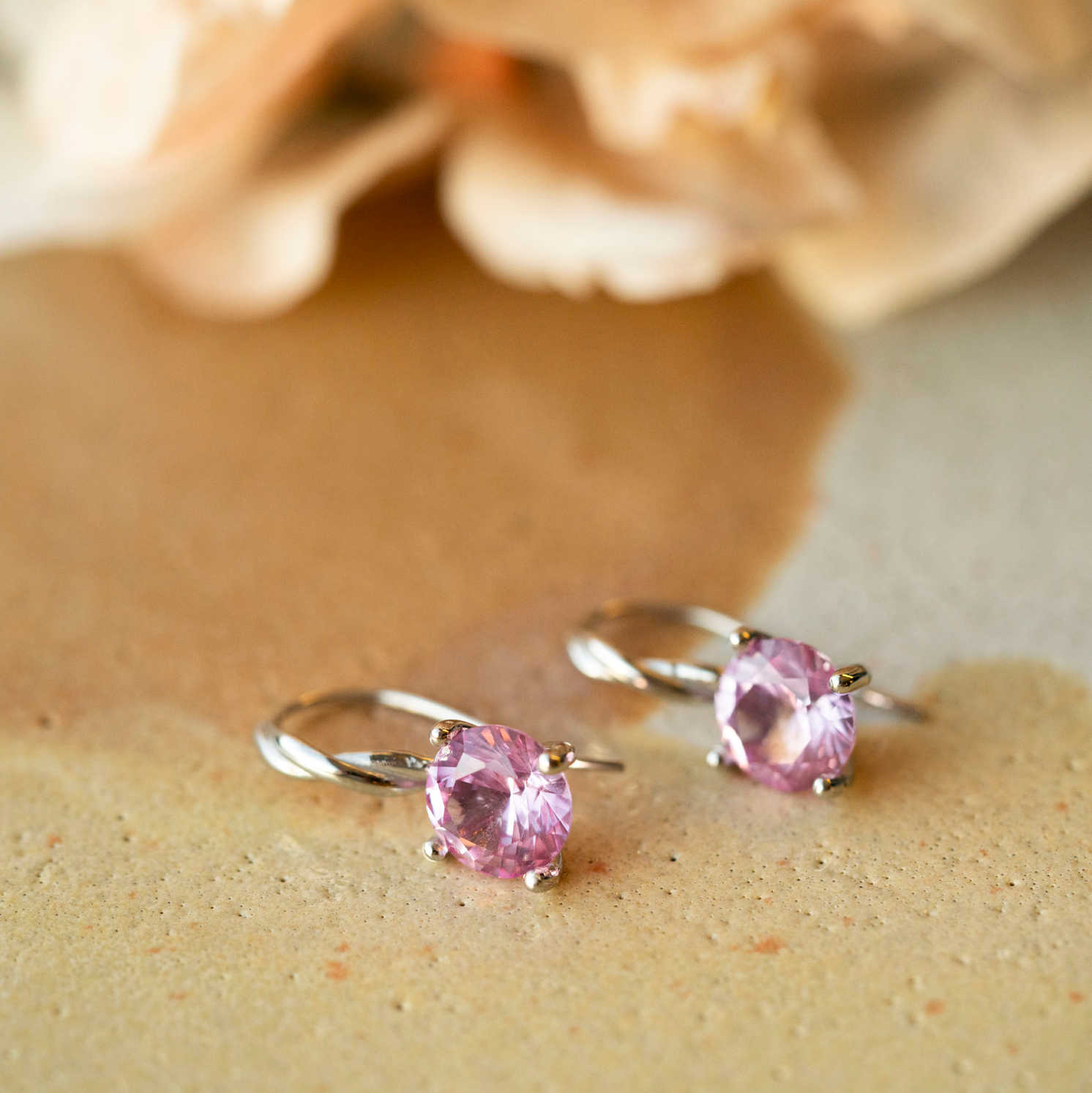 Øredobber i gull med syntetisk spinell