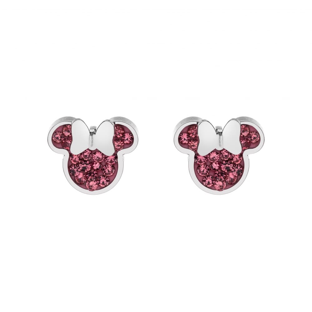 Ørepynt i stål Minni Mus+rosa zirkoner