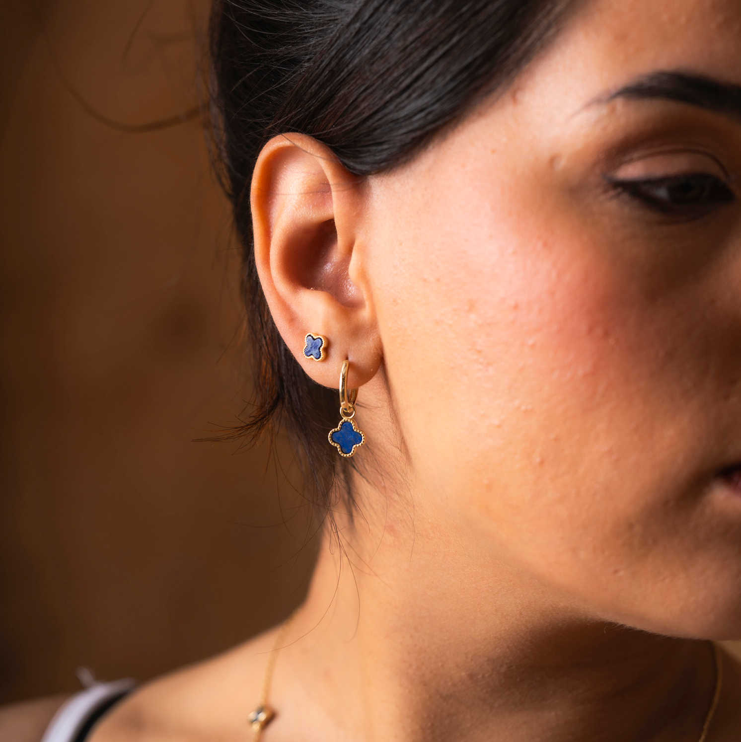 Øreringer i sølv havblå kløver