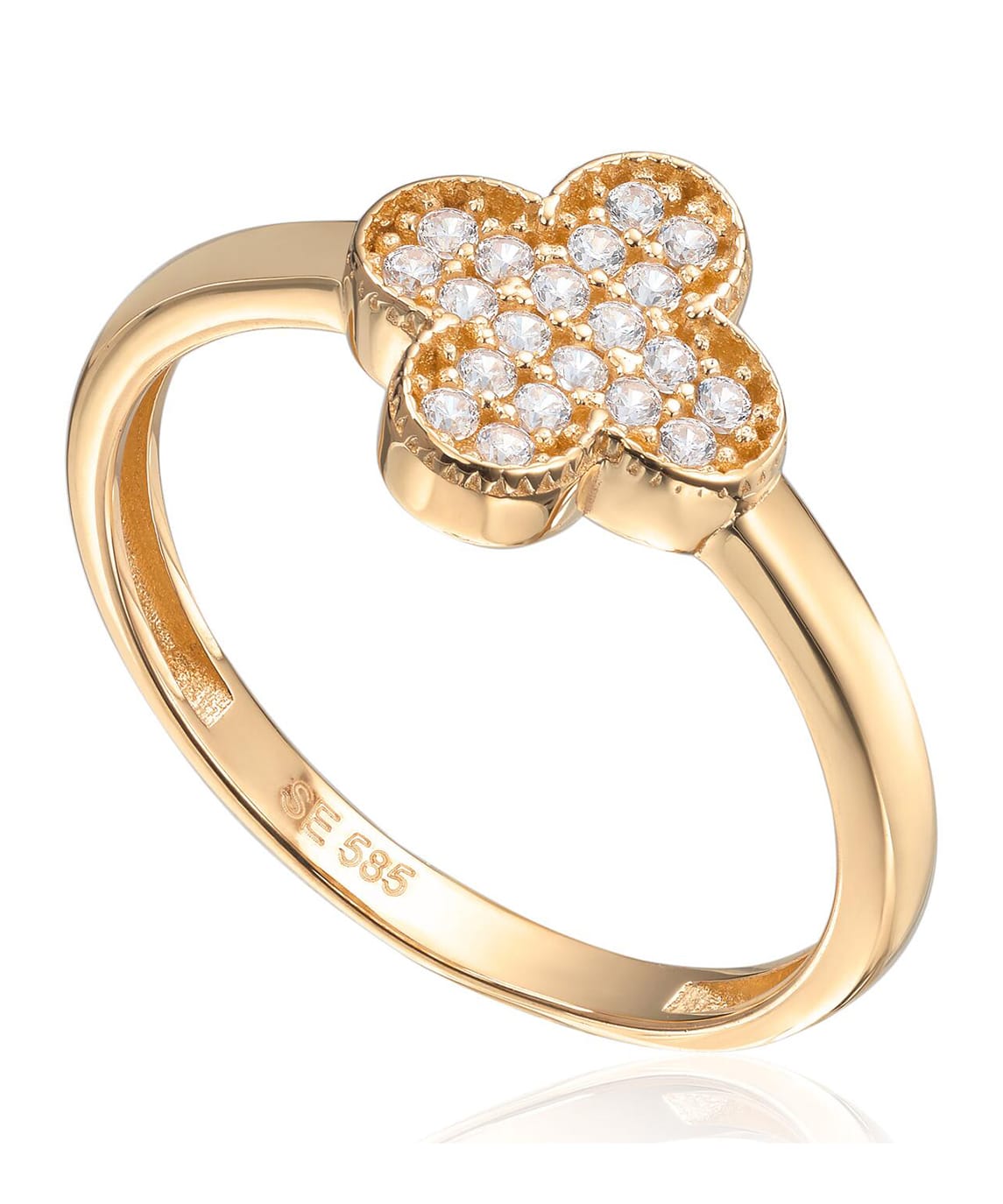 Ring Firkløver i 14K gult gull med Cz