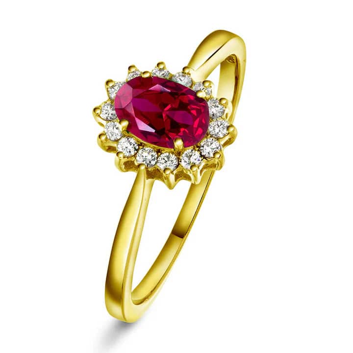 Ring i gult gull med diamant og rubin 0,14 ct WSI