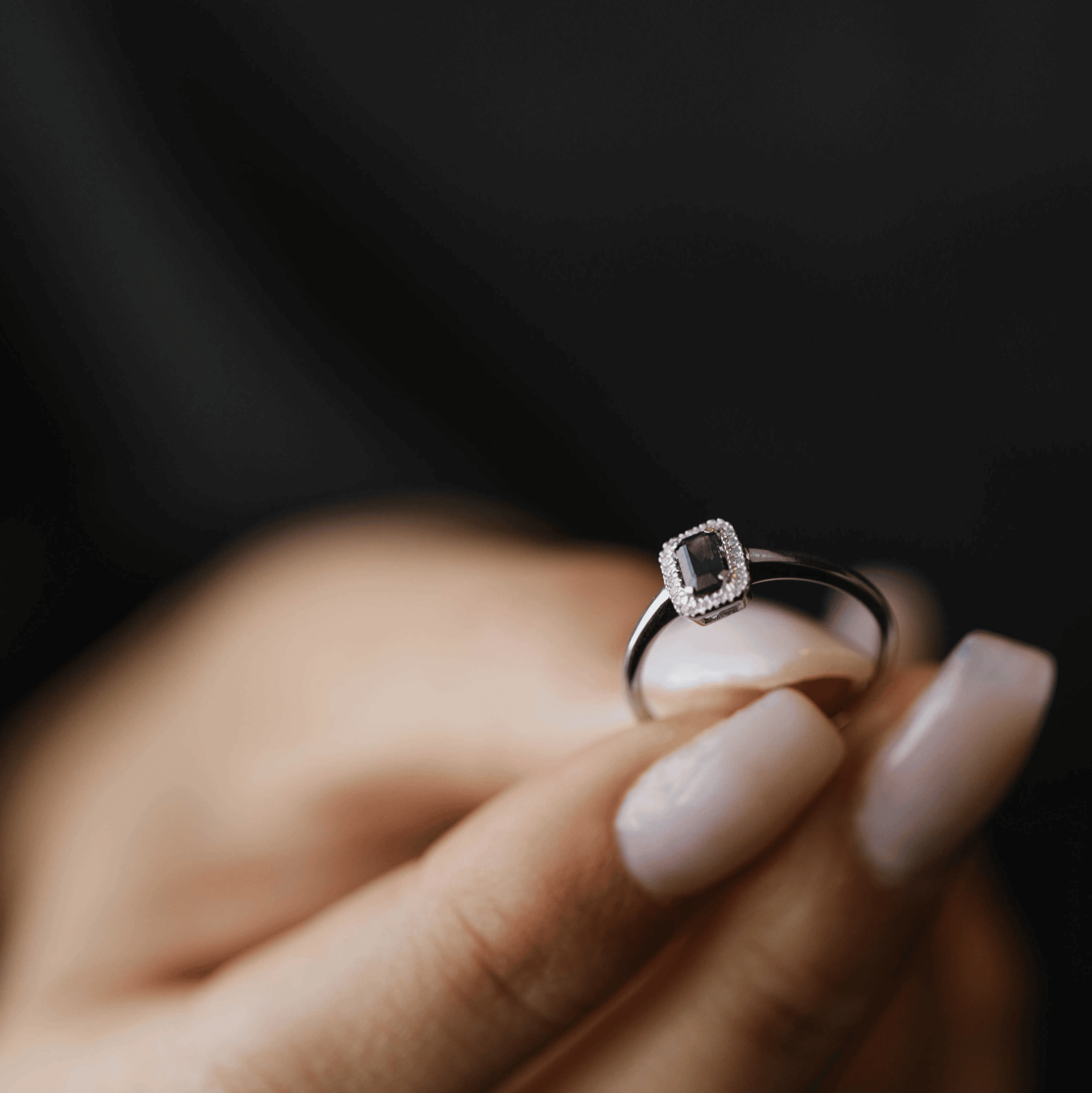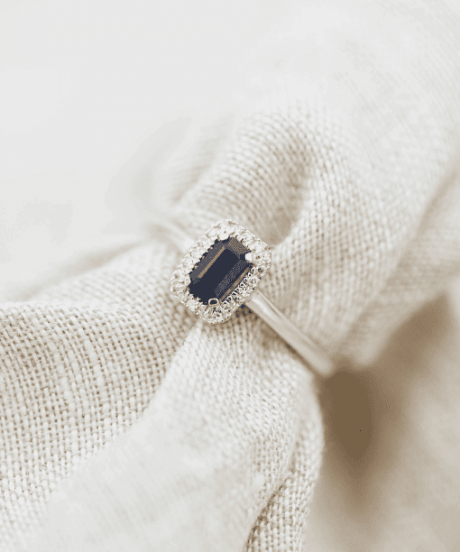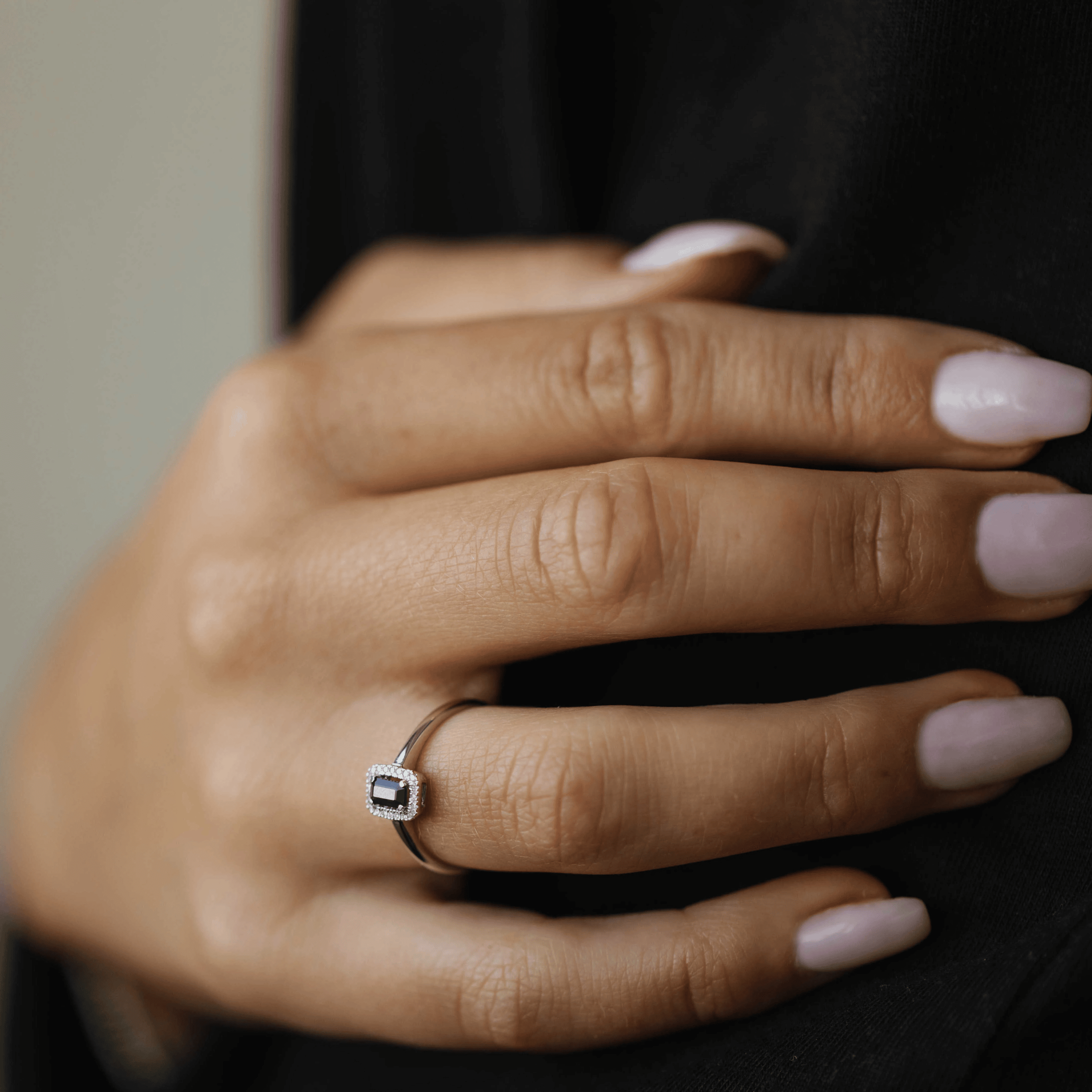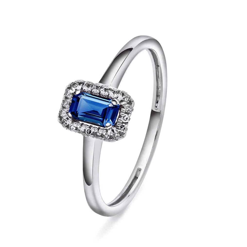 Ring i hvitt gull med diamant og safir 0,05 ct WSI