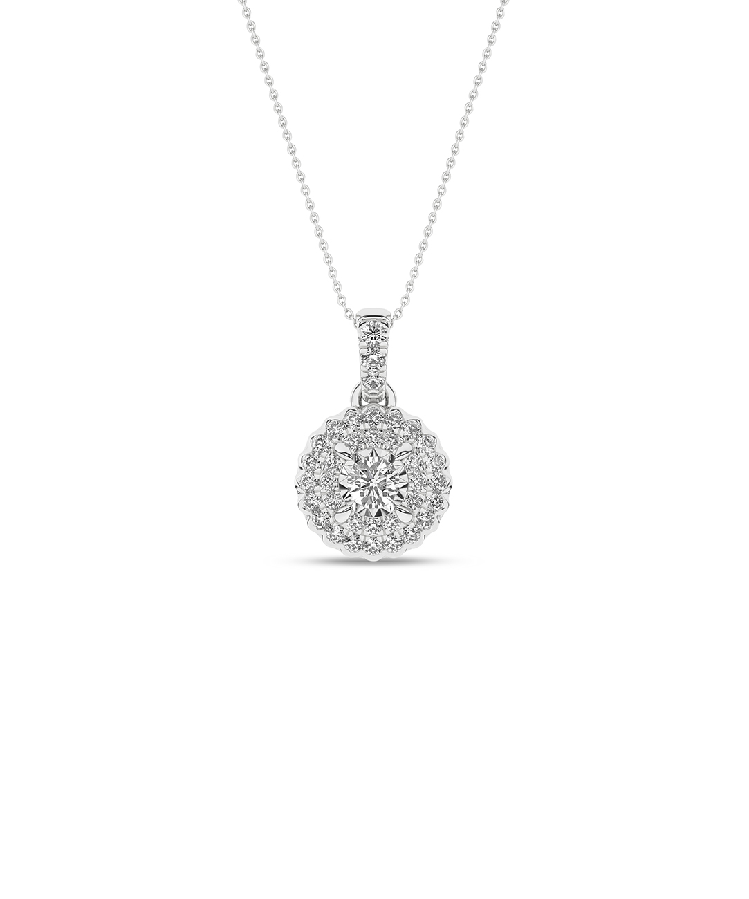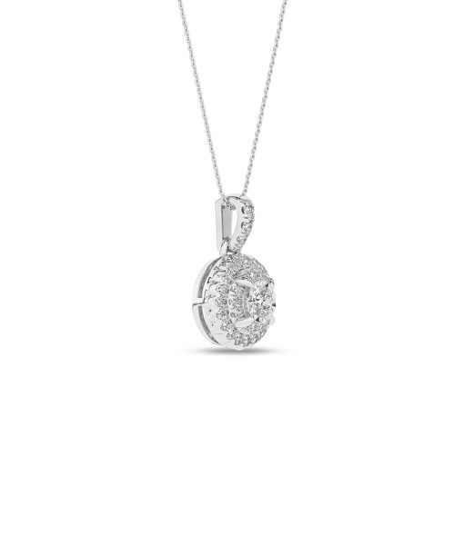 Lekkert rosettanheng i hvitt gull med diamanter.
