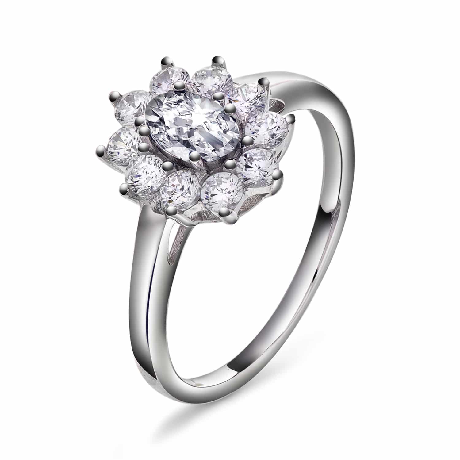 Royal ring i sølv med hvit sten