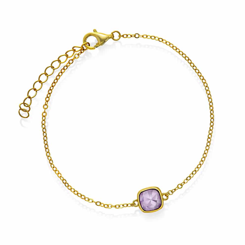 Dette armbåndet bærer en ametyst – en stein som forbindes med ro, balanse og klarhet.