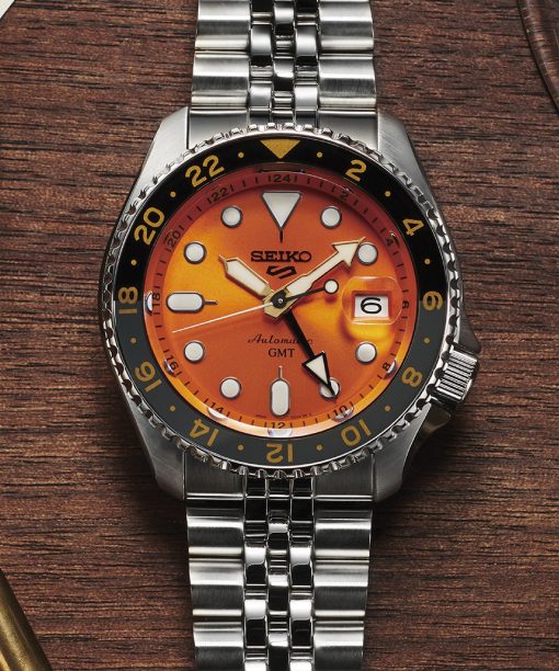 Helt siden den ble lansert i 1968, har Seiko 5 Sports kolleksjonen levert høye nivåer av pålitelighet og holdbarhet. I 2019 ble kolleksjonen relansert med en aktiv og ungdommelig dynamikk. I dag, for første gang, tar Seiko 5 enda et skritt videre med et GMT-kaliber. Basert på den pålitelige plattformen til Caliber 4R, tilbyr denne nye kolleksjonen en bekvemmelig GMT-funksjon i en Seiko 5 kasse, som bare er 0,1 mm tykkere enn den eksisterende.