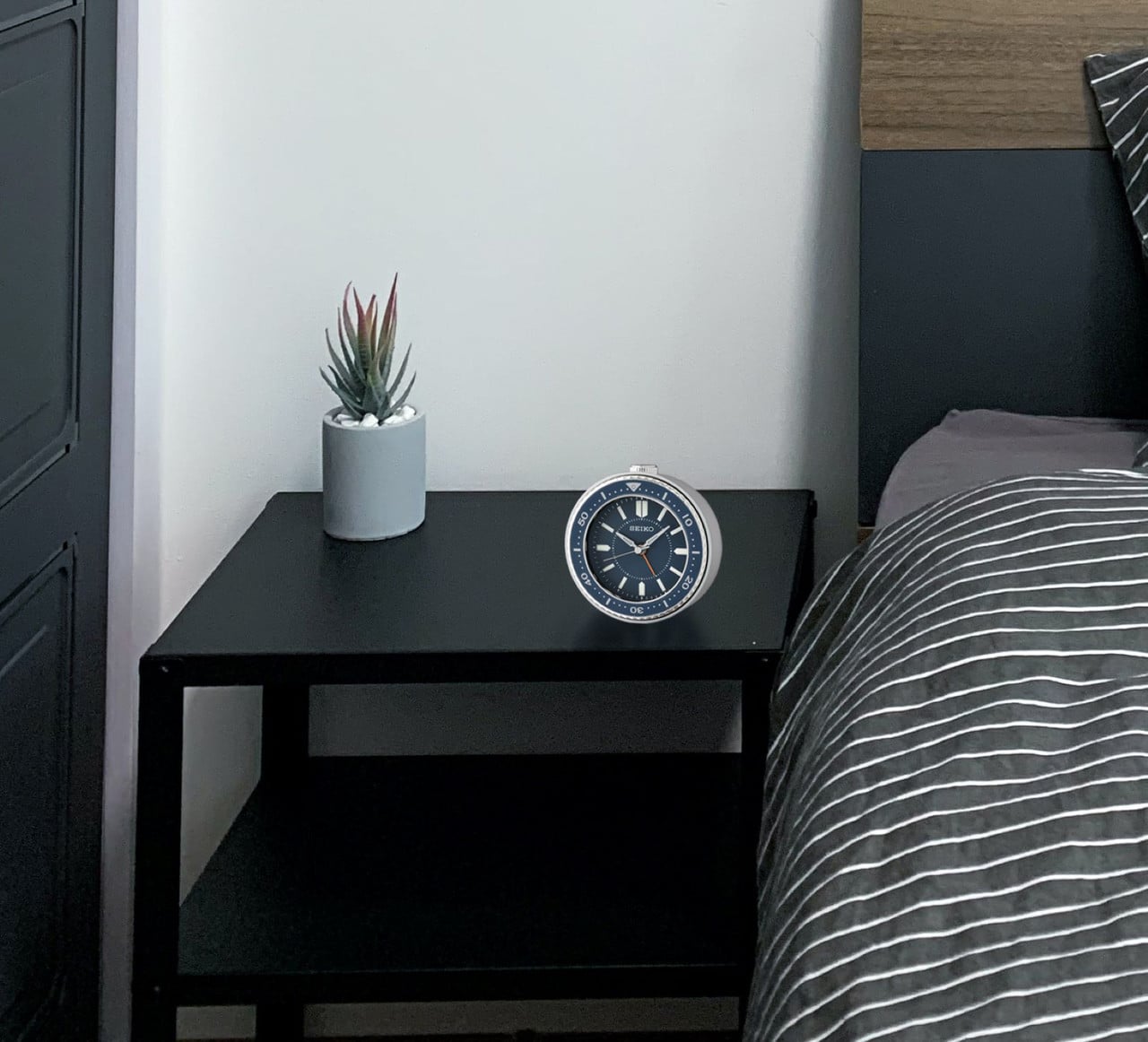 Seiko QHE184L er et tøft vekkerur med flytende sekundviser. Den har også selvlysende markører på tallskiven! Vekkeruret finnes i flere fargekombinasjoner og er inspirert av Seiko sitt klokkedesign. Utstyrt med quartz urverk, stillegående flytende sekundviser, beep alarm, snooze og lys. LED lys blinker når alarmen ringer.