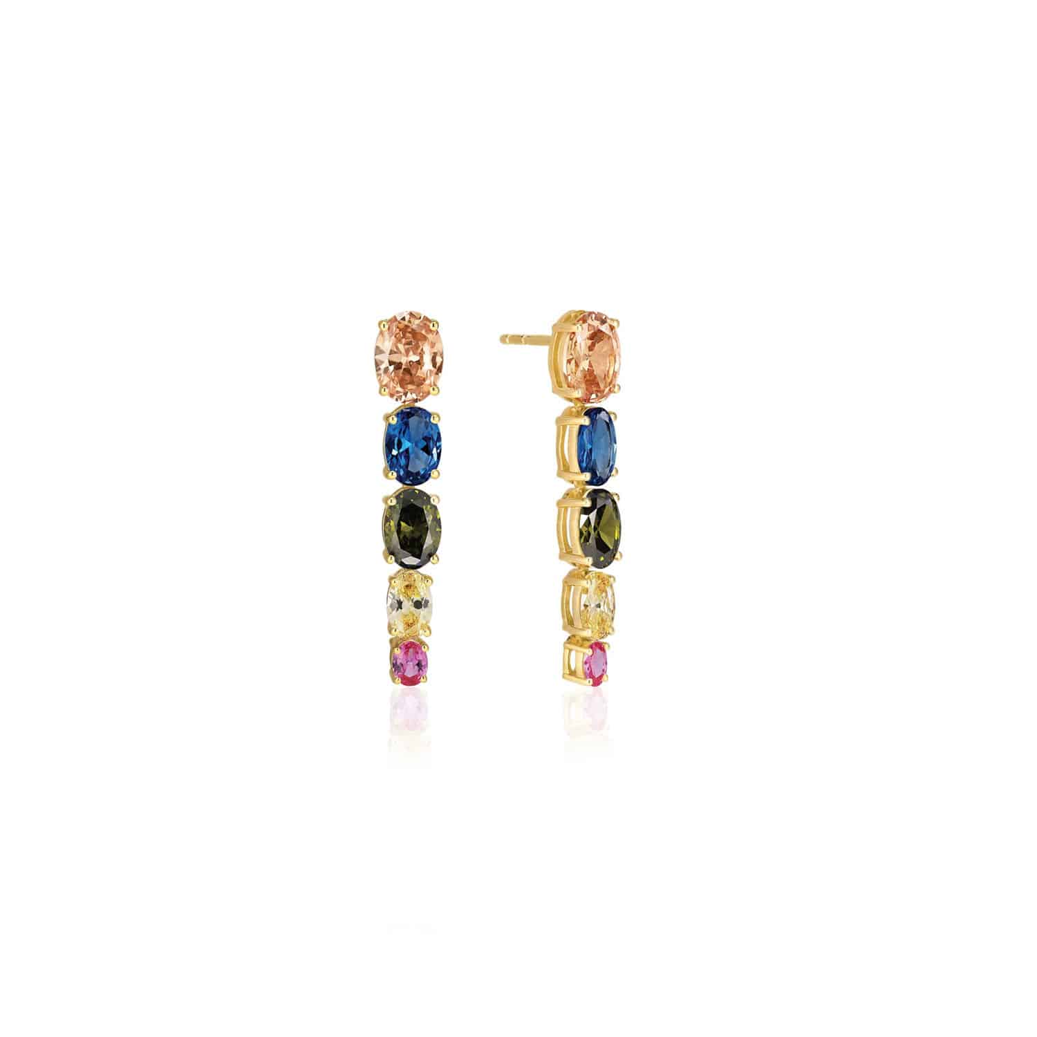 Sif Jakobs Earrings Ellisse Cinque – 18k Gold Plated, With Multicoloured Zirconia