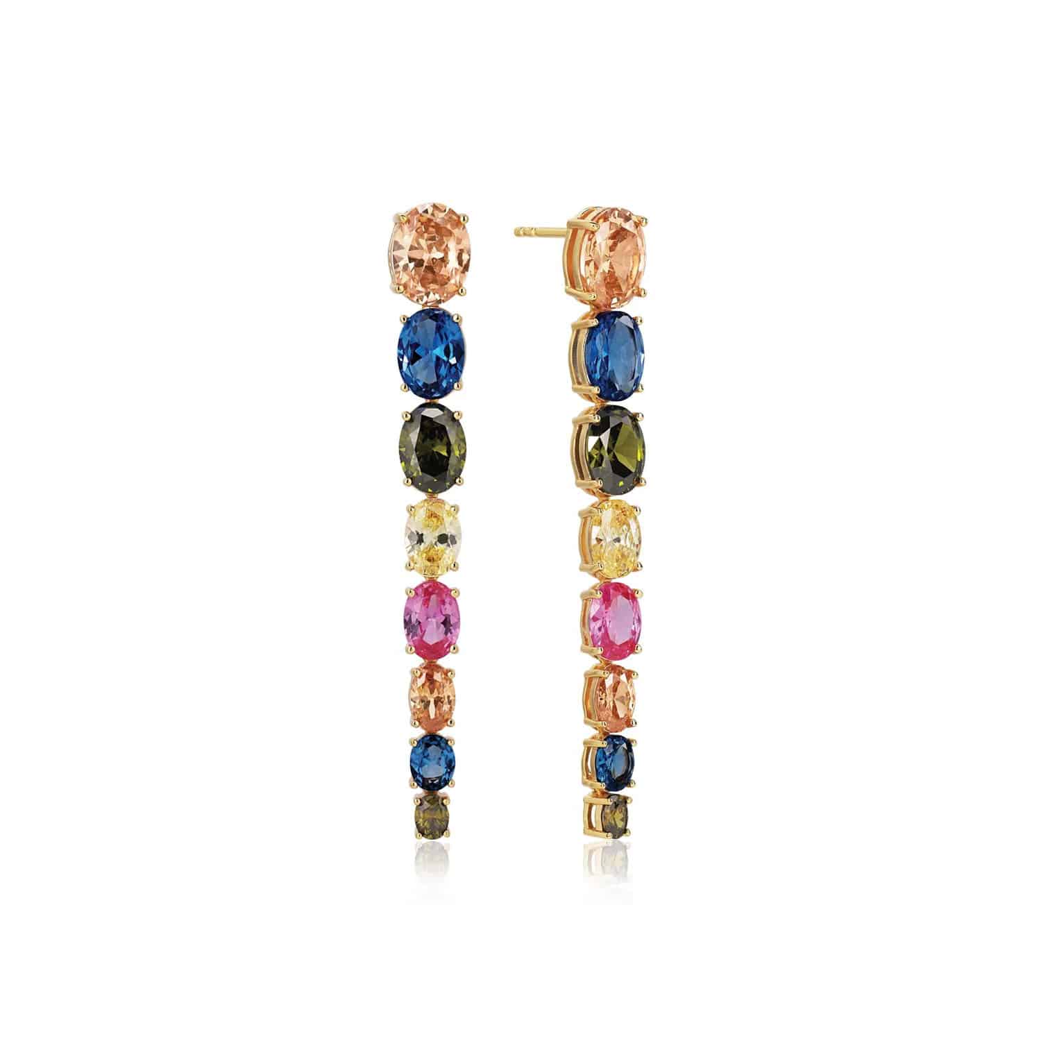Sif Jakobs Earrings Ellisse Lungo Otto – 18k Gold Plated, With Multicoloured Zirconia