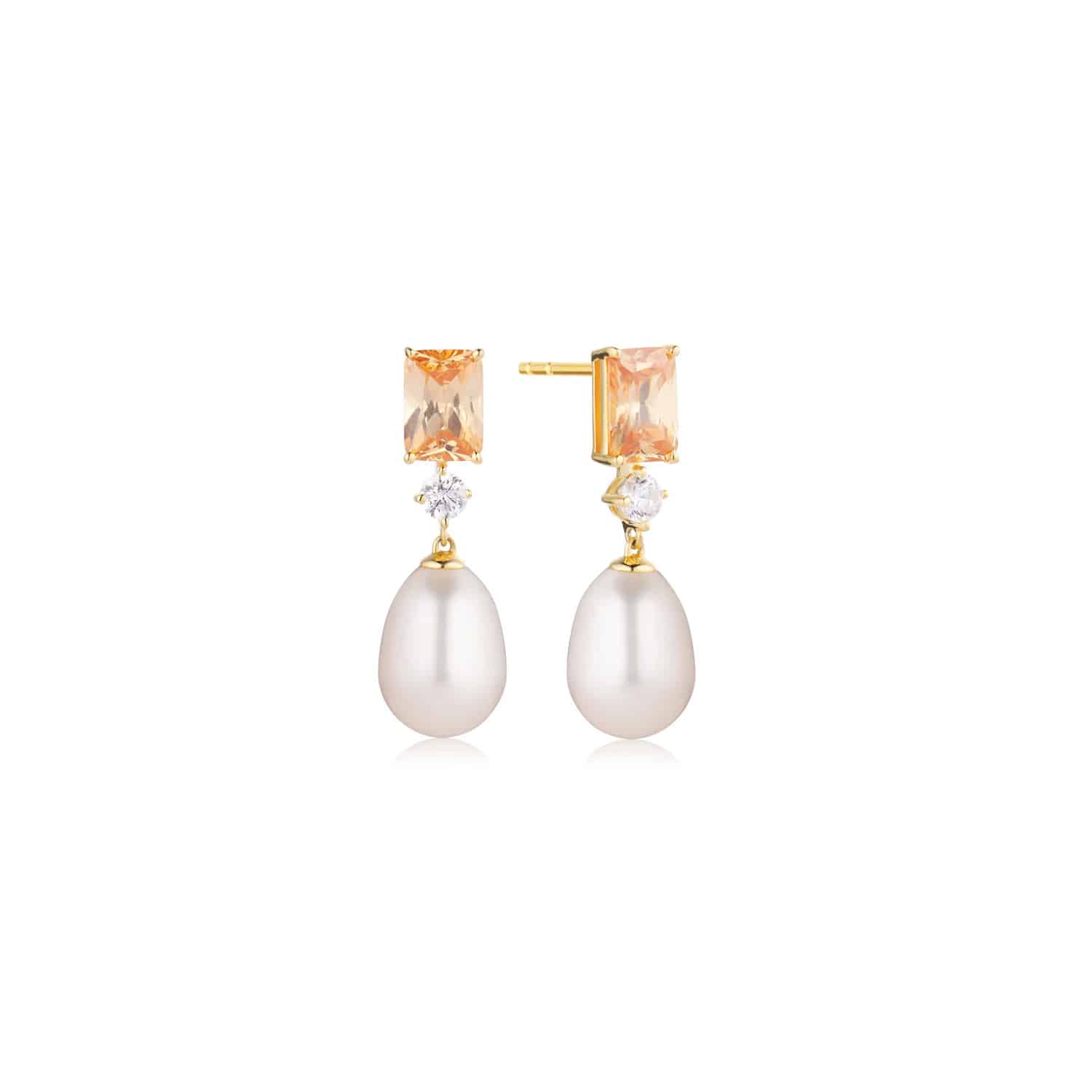 Sif Jakobs Earrings Galatina – 18k Gold Plated, With Freshwater Pearl And Champagne Zirconia