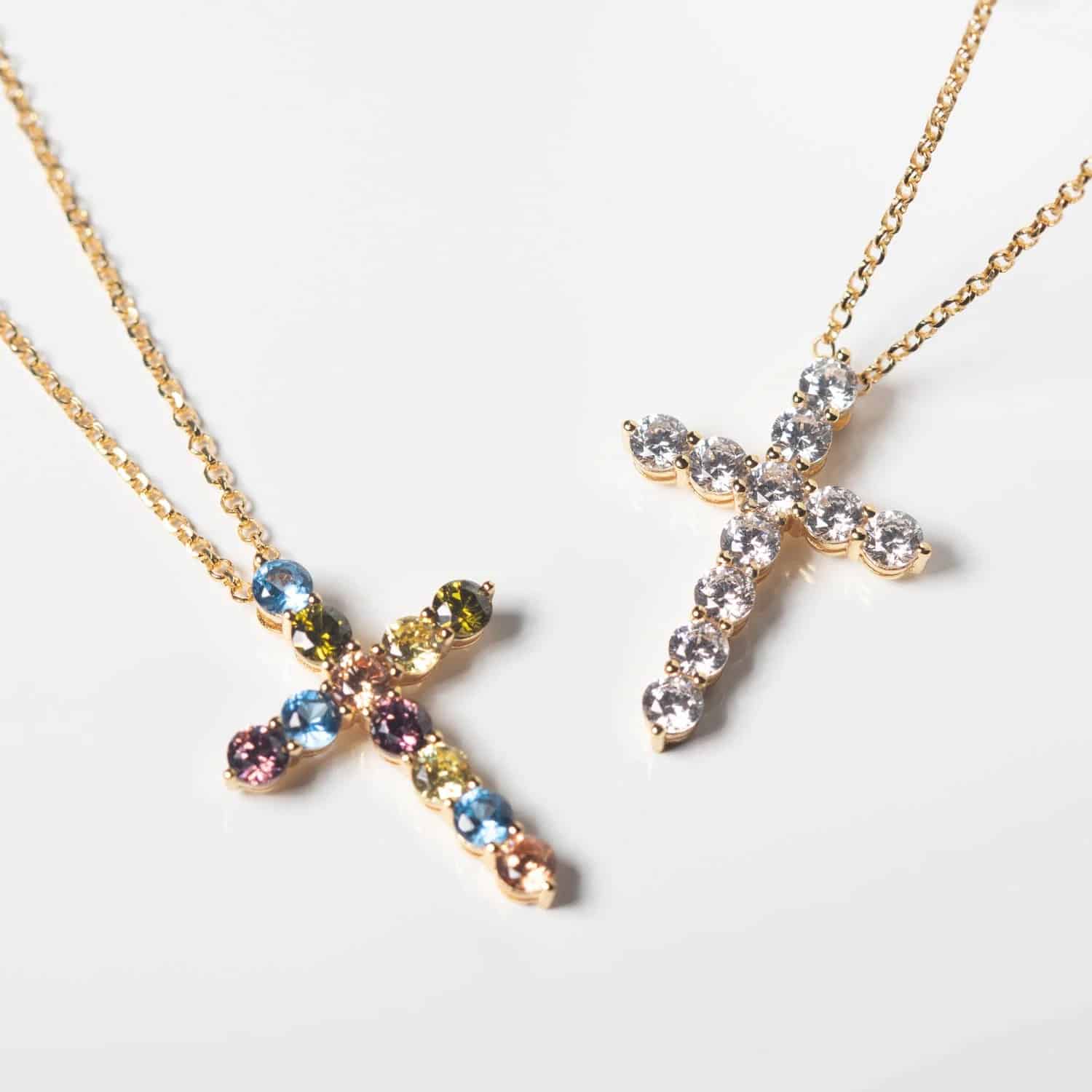 Sif Jakobs Necklace Belluno Croce – 18k Gold Plated, With Multicoloured Zirconia