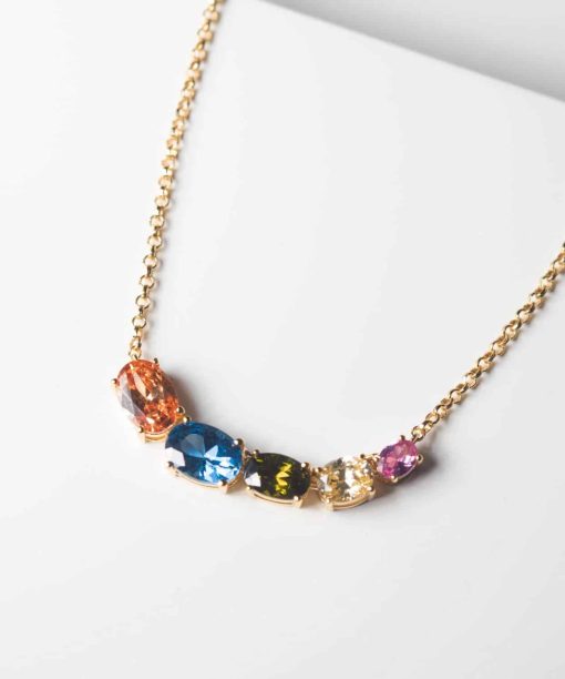 Sif Jakobs Necklace Ellisse Cinque – 18k Gold Plated, With Multicoloured Zirconia