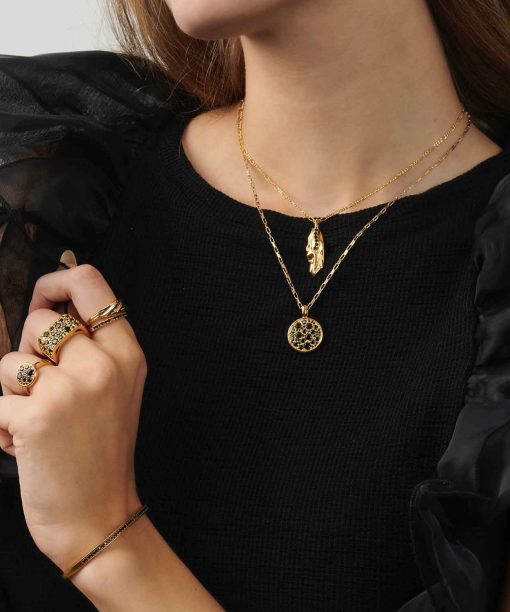 Sif Jakobs Pendant Novara – 18k gold plated with black zirconia (45-60cm)