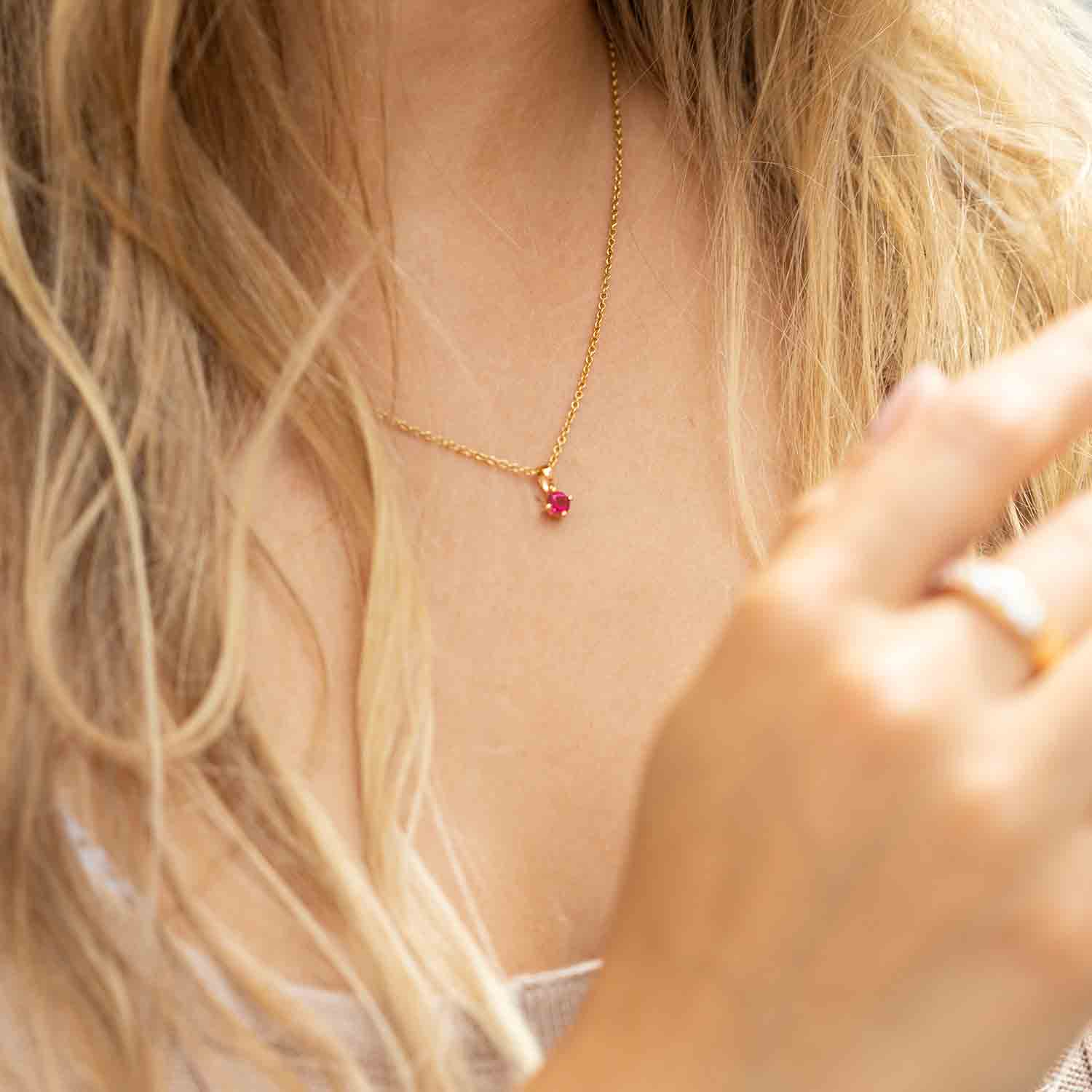 Sif Jakobs Pendant Princess round – 18k gold plated with red zirconia