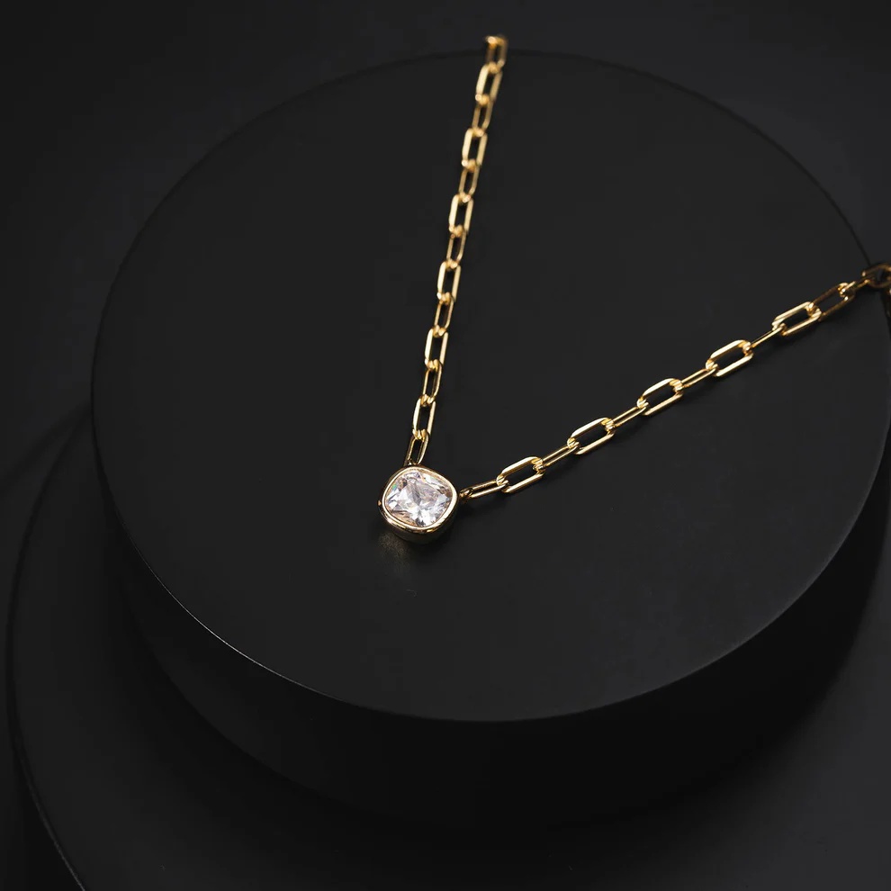 Smykke i forgylt 925 sølv med hvit sten