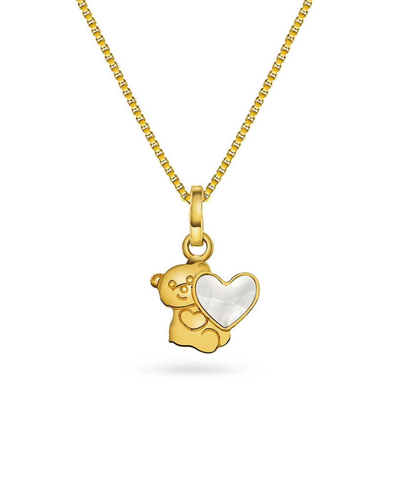 Smykke i gull med perlemor bamse