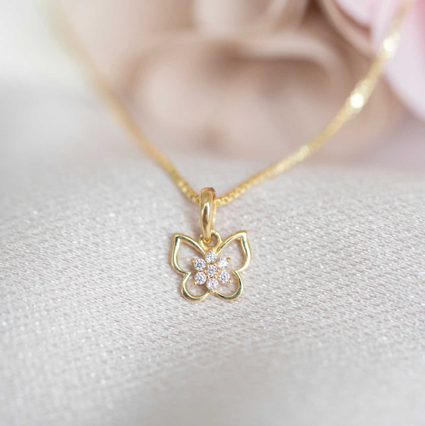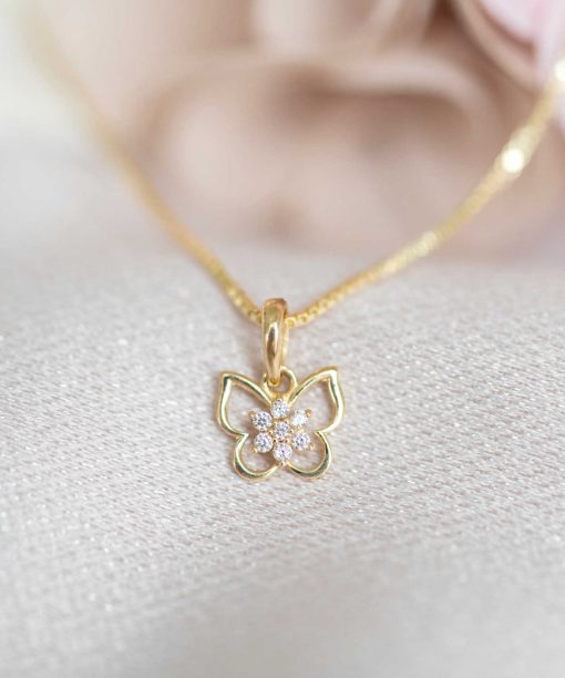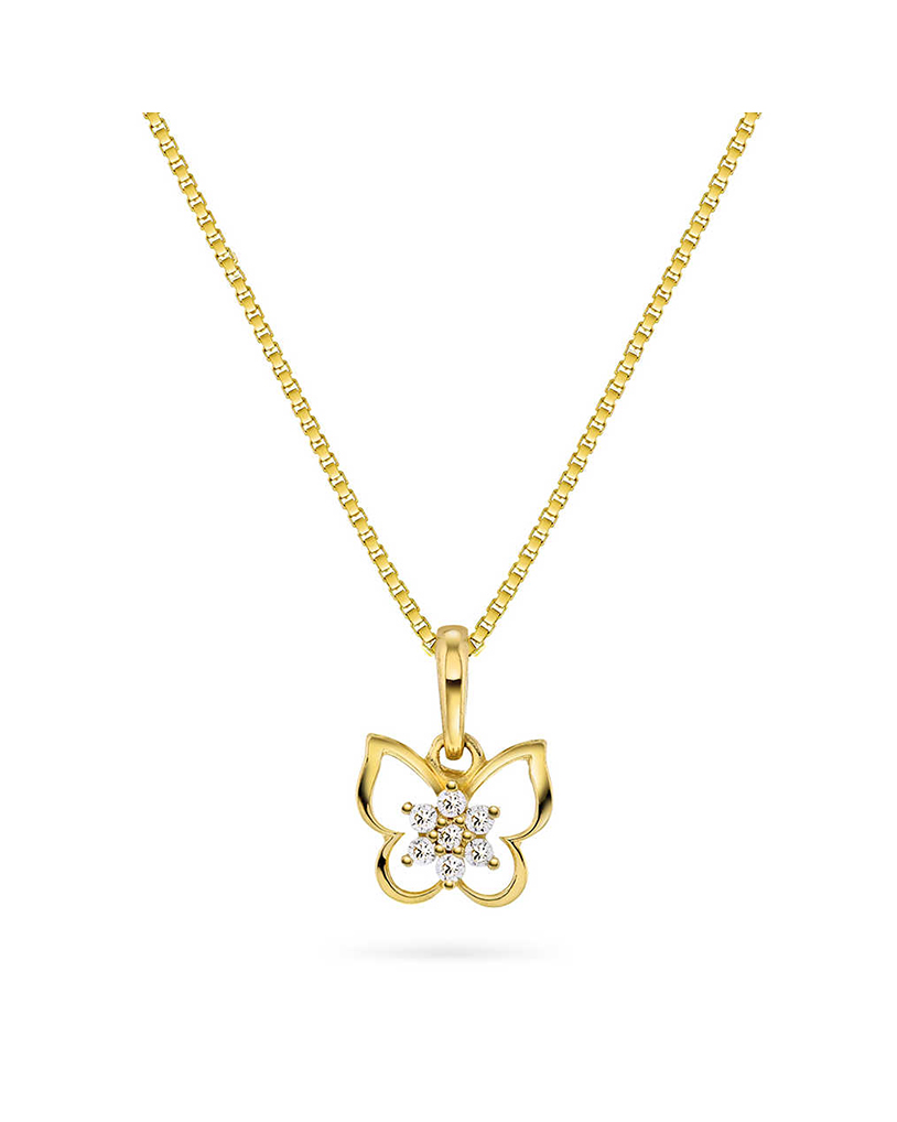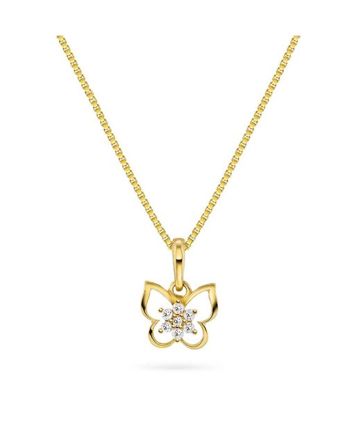 Smykke i gull med zirkonia sommerfugl