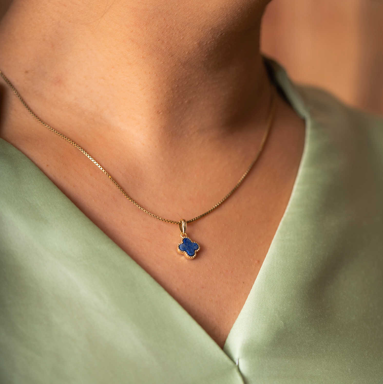 Smykke i sølv med havblå kløver