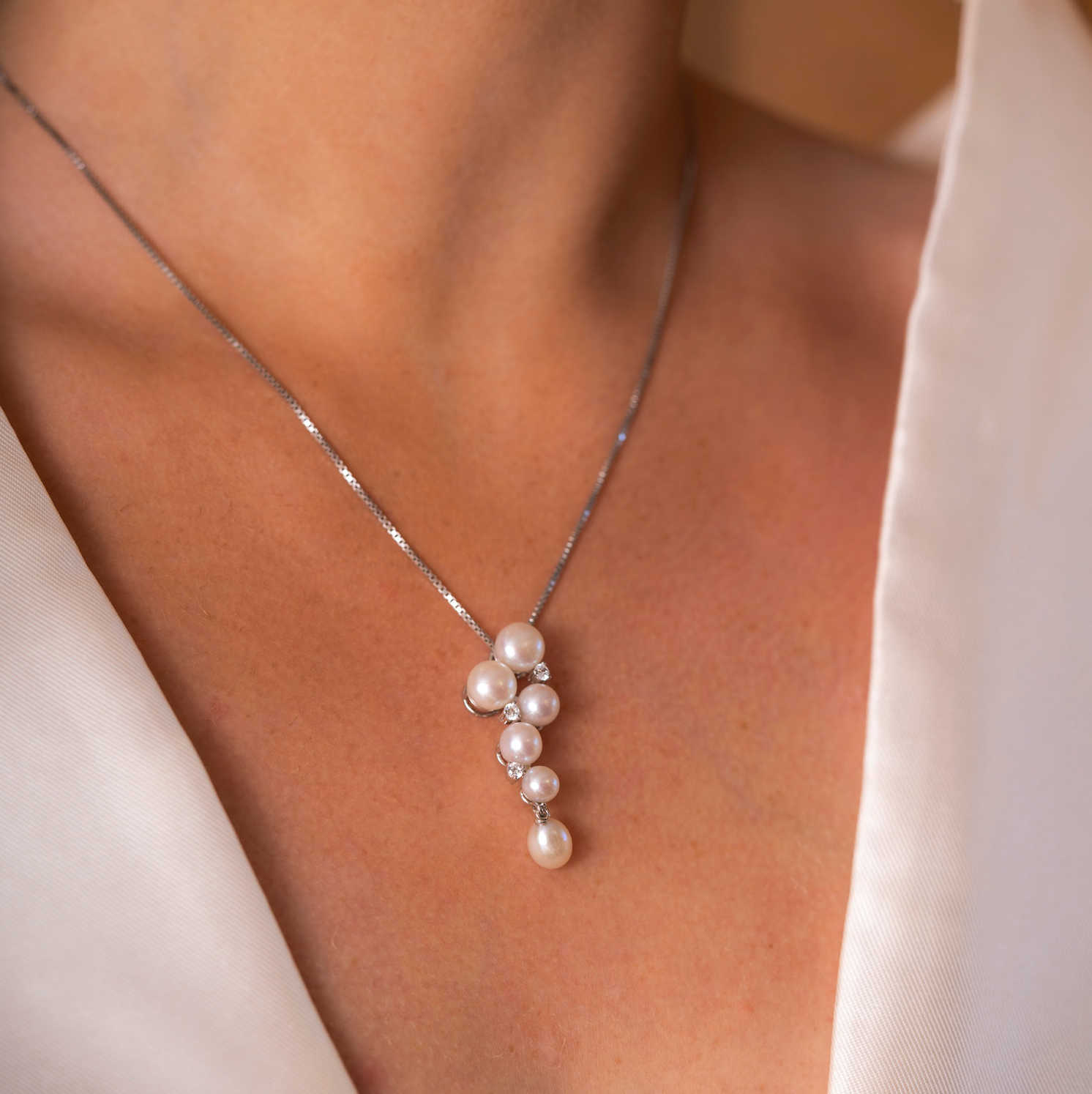 Smykke i sølv med perler og zirkonia