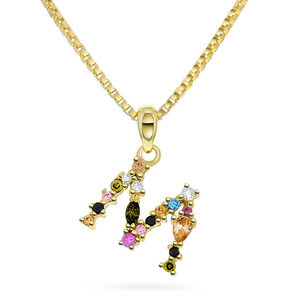 Smykke i sølv med zirkonia bokstav M